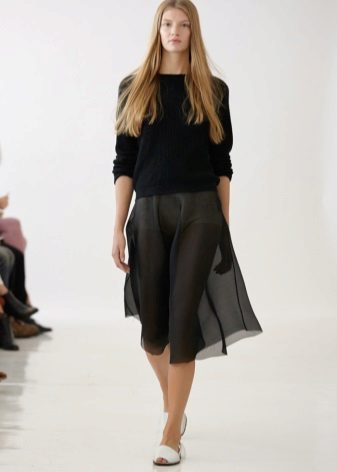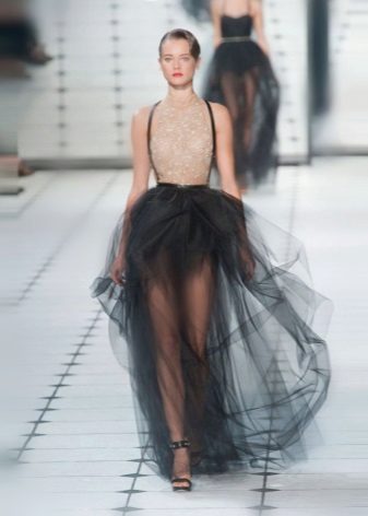 In addition to the above-mentioned maxi made of transparent fabric with a short opaque lining, today many other models from similar fabrics are relevant. In general, today is a real boom translucent layering.