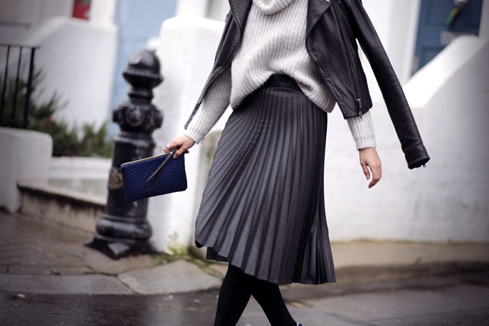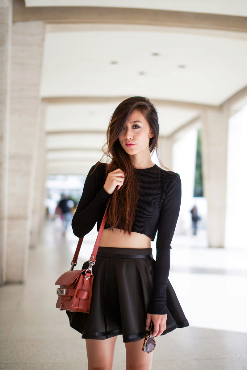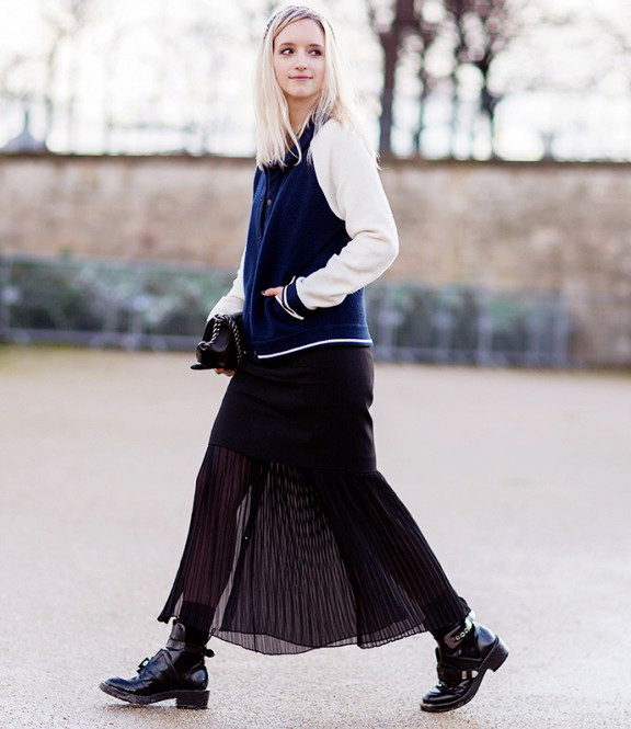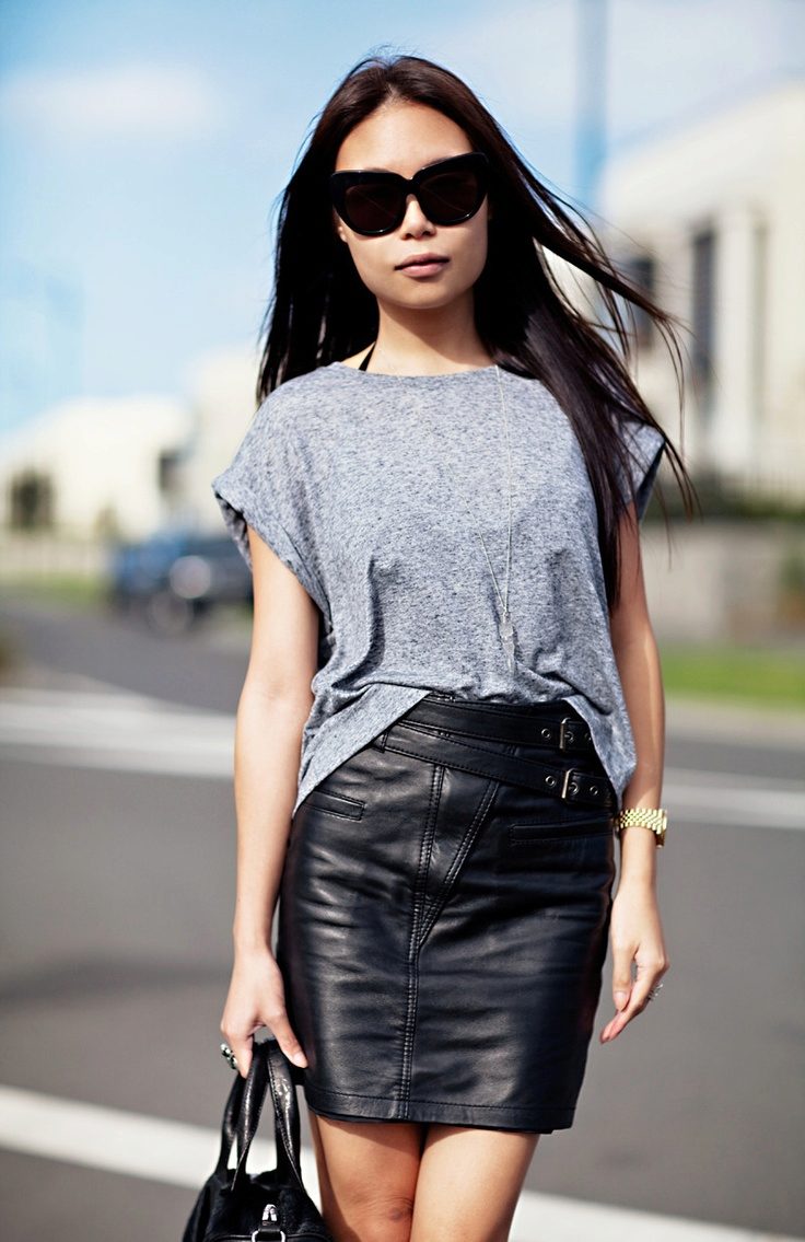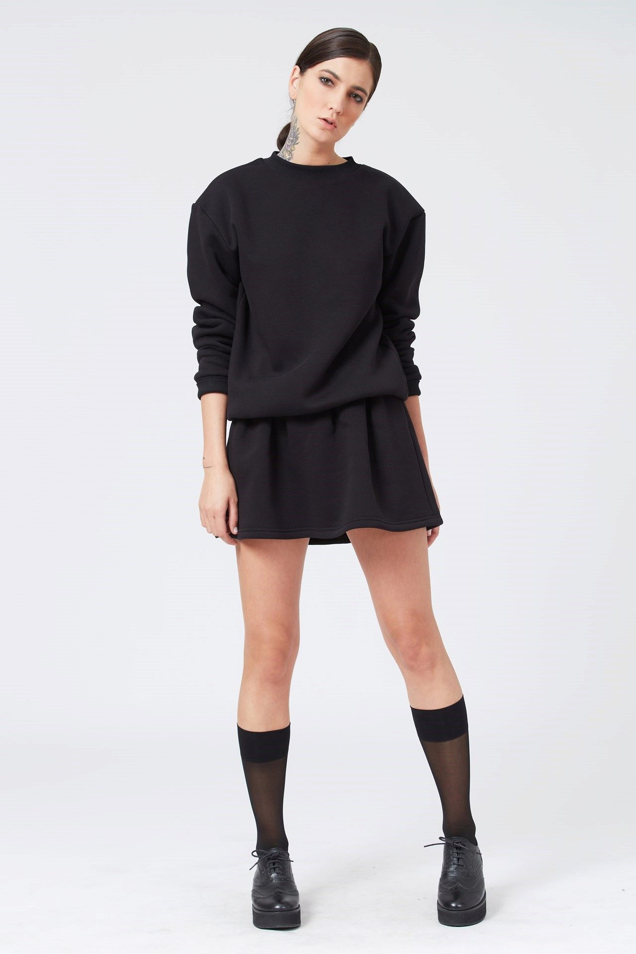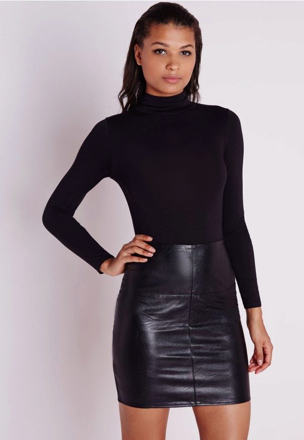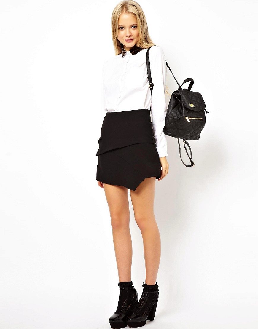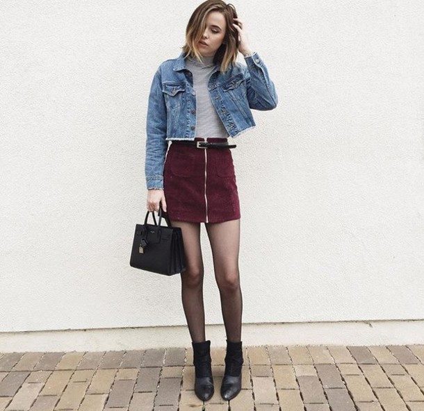 The shorter the skirt, the stricter the top. The perfect pair of turtleneck, shirt or jacket.