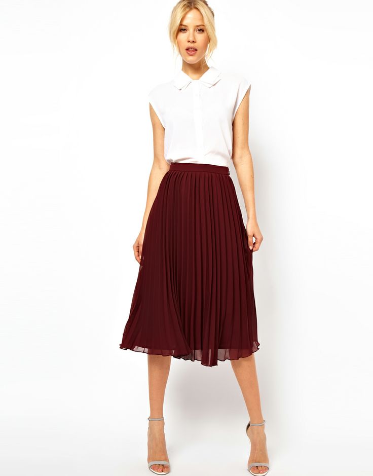 Most women of fashion today prefer such skirts of medium length, but the maxi and mini variations of these models also look feminine and attractive.
