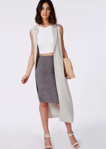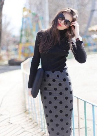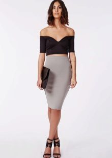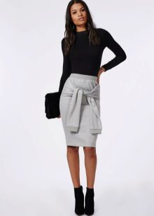 Gray pencil skirt perfectly can be combined with white blouses or shirts, stylish monochromatic turtlenecks. On cool evenings, the image can be complemented with a plain jacket or jacket.