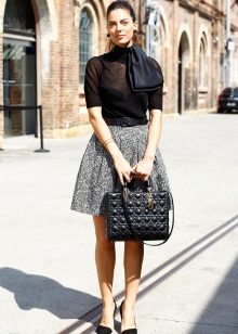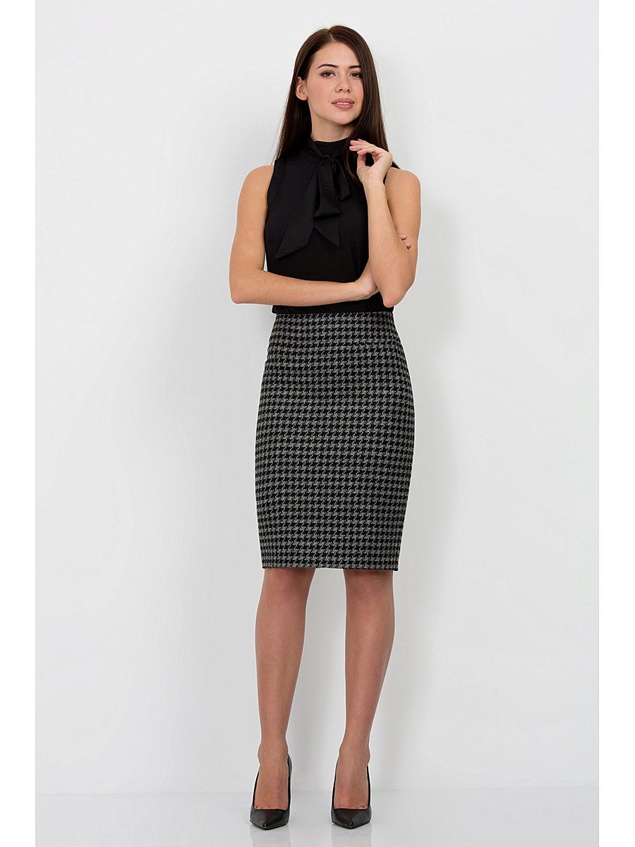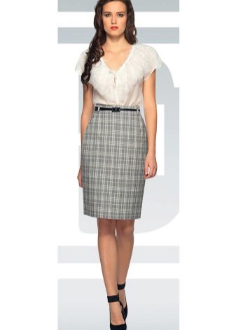 To embody a business image, it is worth wearing a light gray skirt with straight cut and classic white, blue or lilac blouses. The classic of the genre is the black top.
