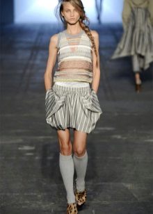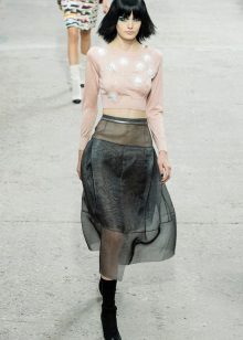 When choosing the top, you can stay on the vest, stylishly, conveniently and practical. Designers offer to combine sports-style skirts with tops, T-shirts or sweatshirts. This outfit is suitable for walking or outdoor recreation.