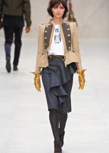 Gray skirt perfectly combines with different styles of jackets, because it is only the background, which can be decorated with bright colors. If you wear a skirt and a gray sweater, then the emphasis should be on accessories or shoes.