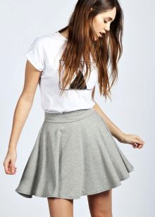 A gray mini length skirt always looks feminine and playful, except for straight cut skirts. You can add playfulness with ruffles, flounces, prints and other decorative elements. Even the gray color does not change the impression of a short skirt.