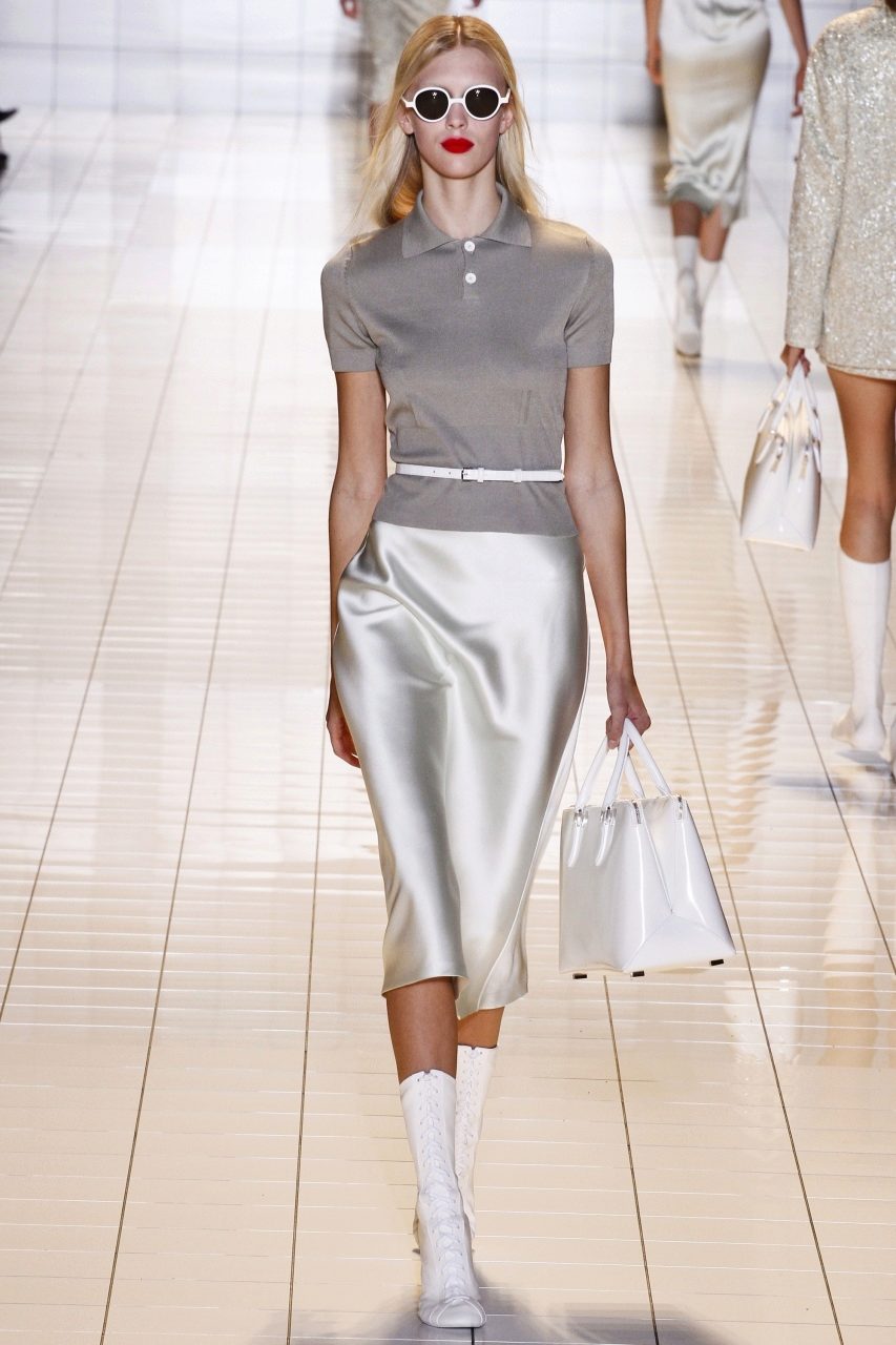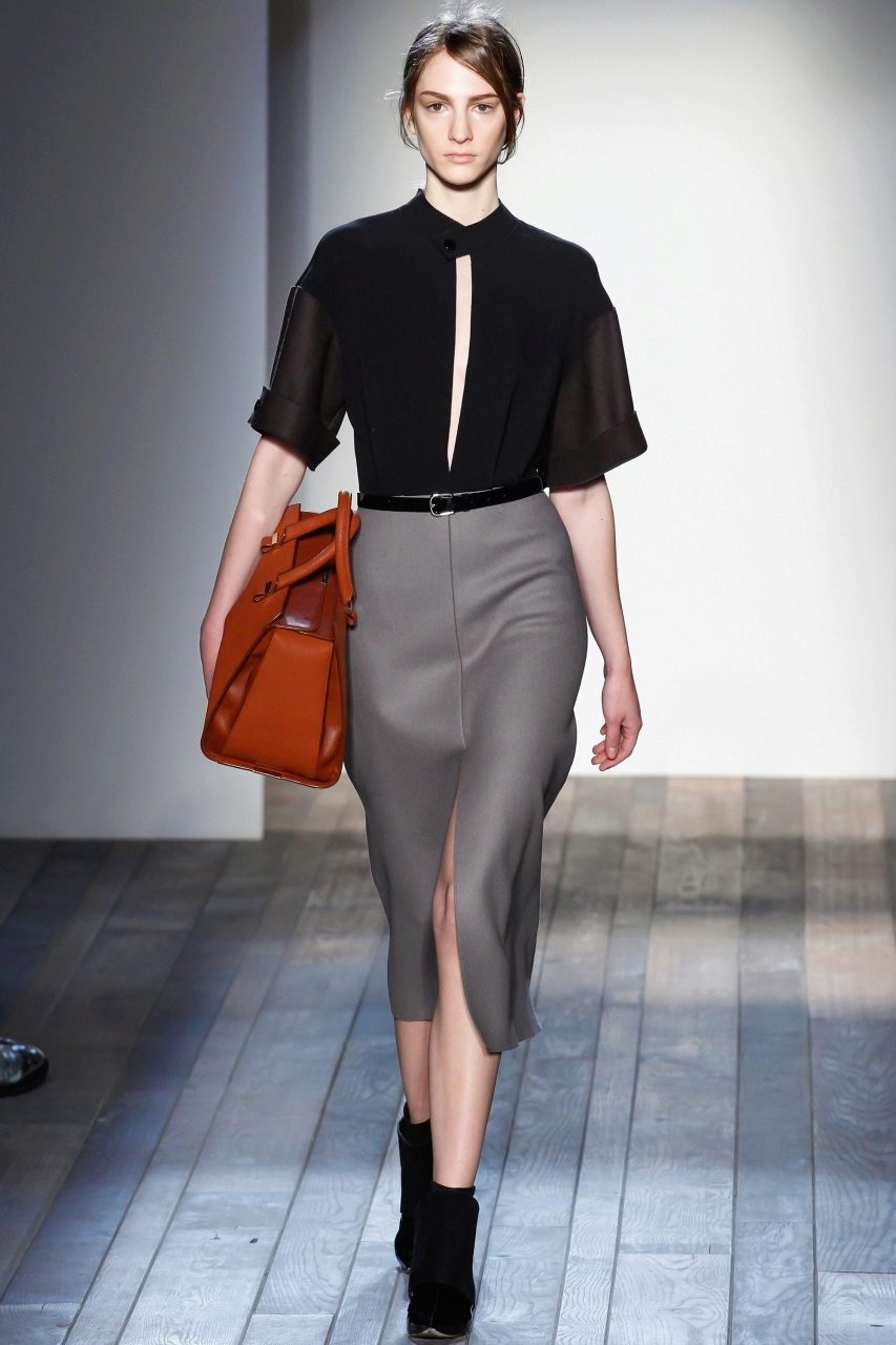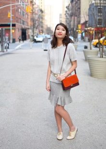 To draw attention to yourself, and not to clothes, you should wear a gray skirt with a top in white, gray or black. Thus, you can create a silhouette in minimalism.