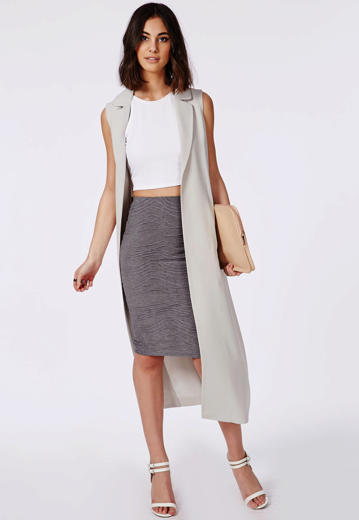 Light gray skirt should be in the wardrobe of every girl, because it is ideal for the embodiment of a romantic and feminine, casual or business look.