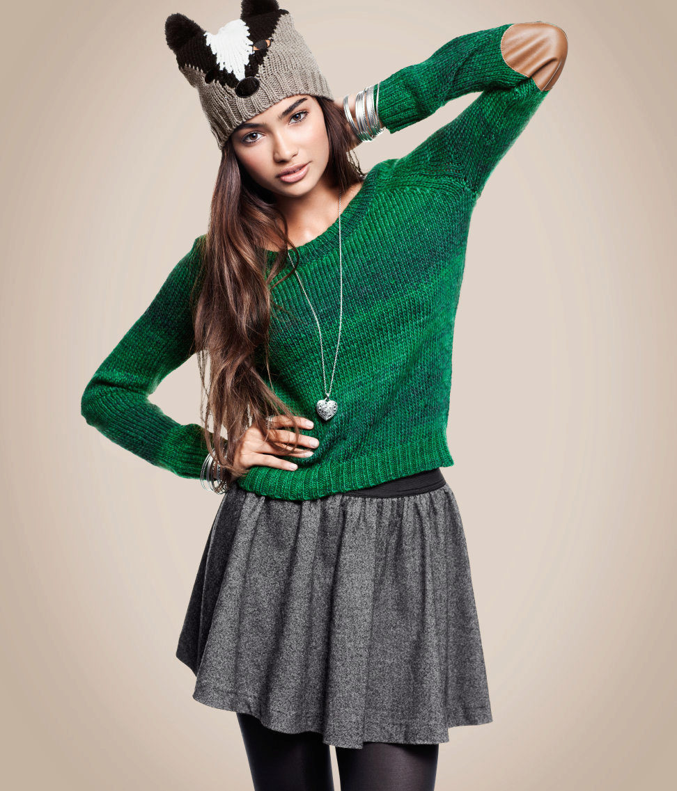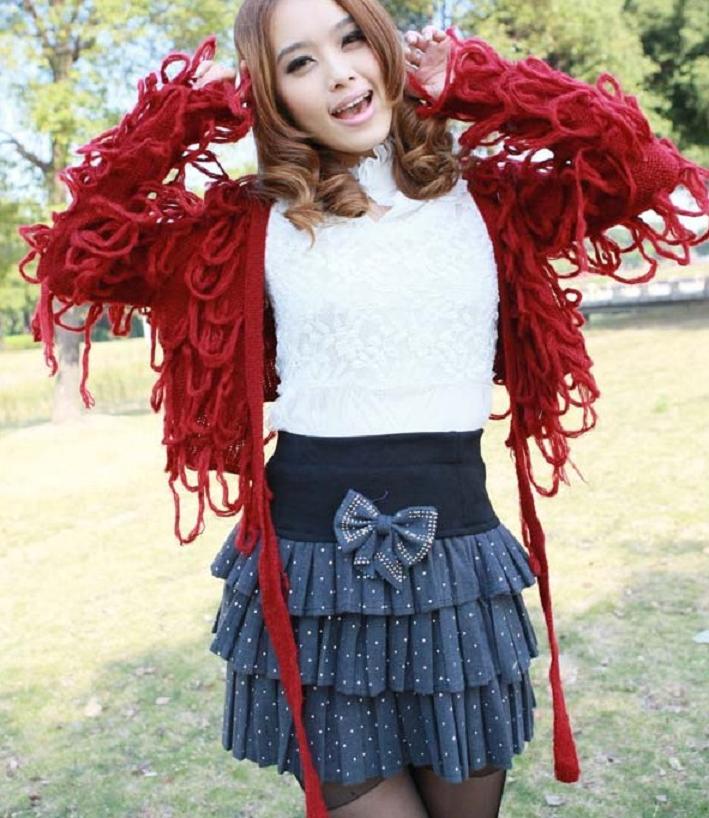 In the cool season with a skirt often wear a sweater or sweater. This tandem looks stylish and beautiful.