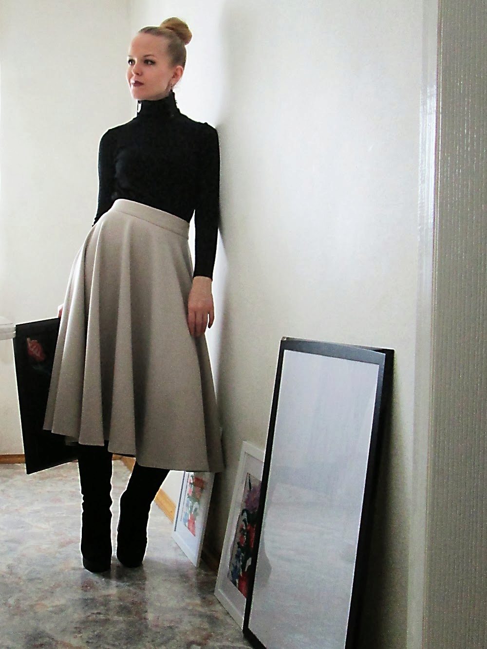 The gray skirt can be of varied cut and style, so designers use different fabrics.