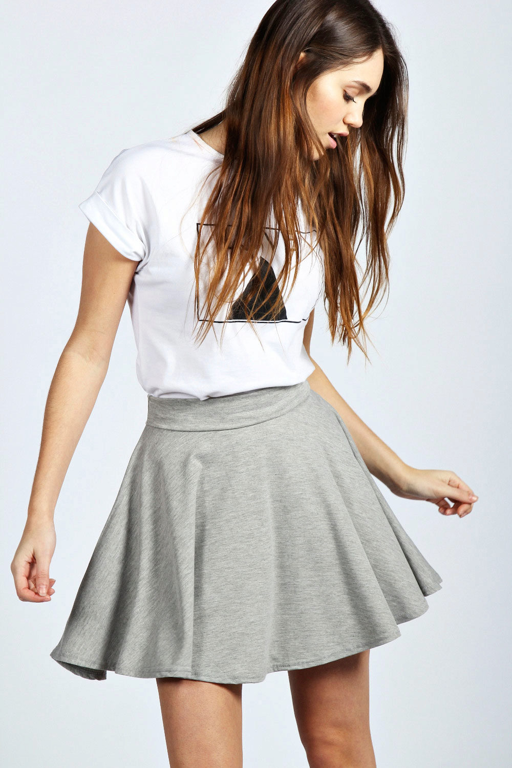 Sun skirt is present in the wardrobe of many girls, because it refers to universal things. But it is the gray skirt that gives girls more opportunities to create an unforgettable image.