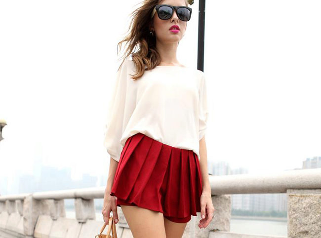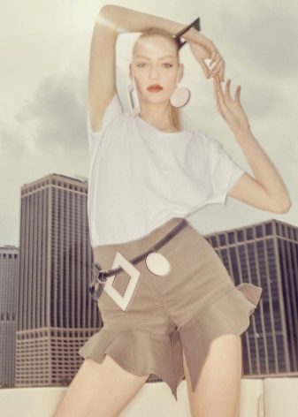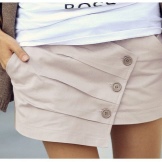 The skirt-shorts are sewn from thin and dense materials, it is modeled in different styles, it has various lengths and a wide range of colors. The waist can be high and low; folds, patch pockets, smell, drapery, etc. are used as additional decorative elements.