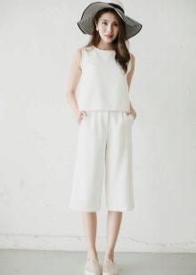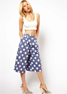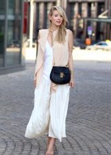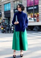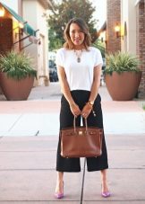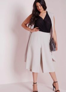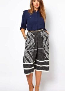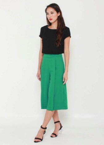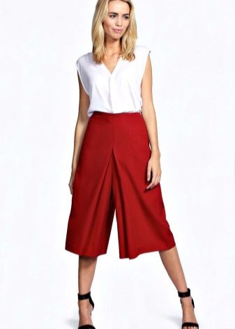 To create a festive dress, an elegant, long skirt-shorts can be combined with a beautiful blouse and high-heeled shoes.