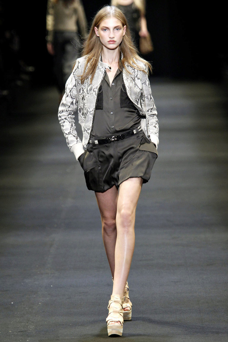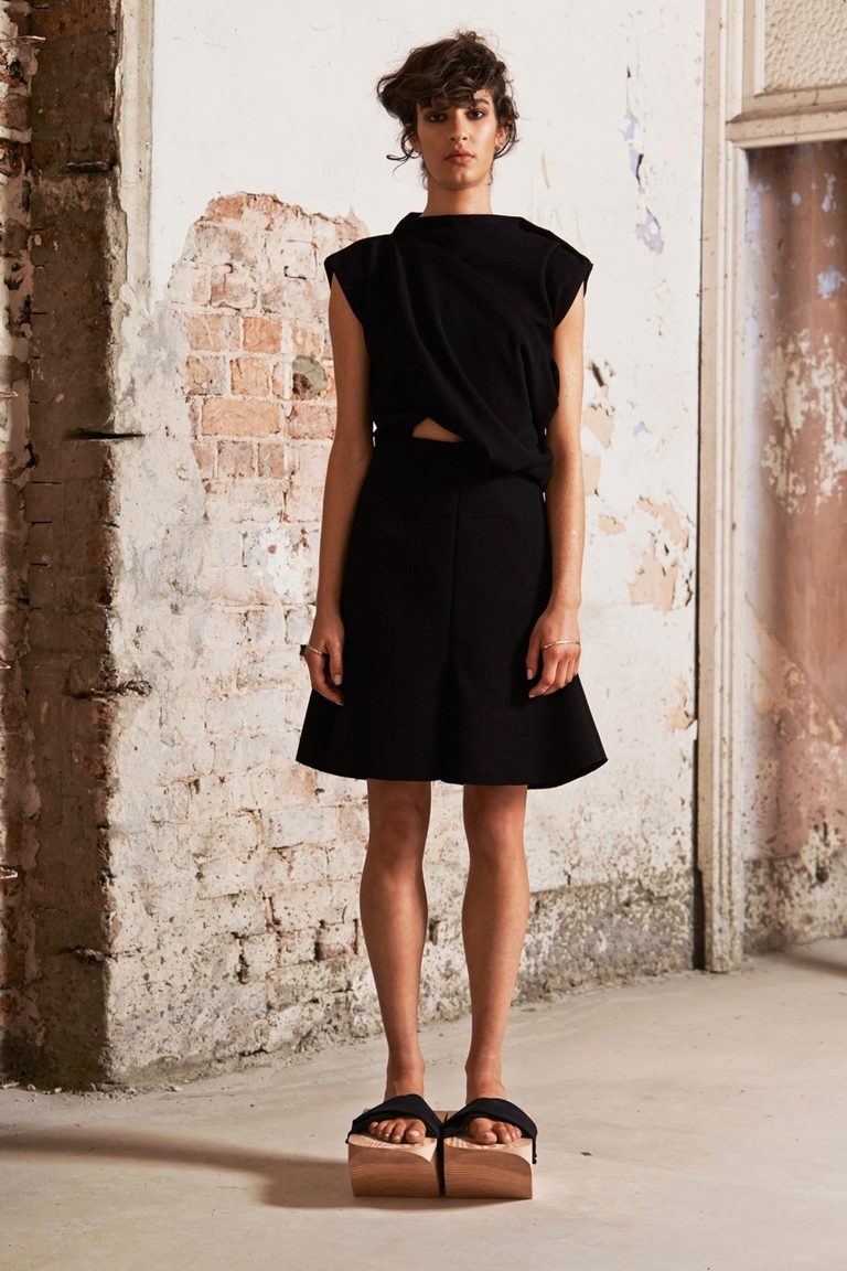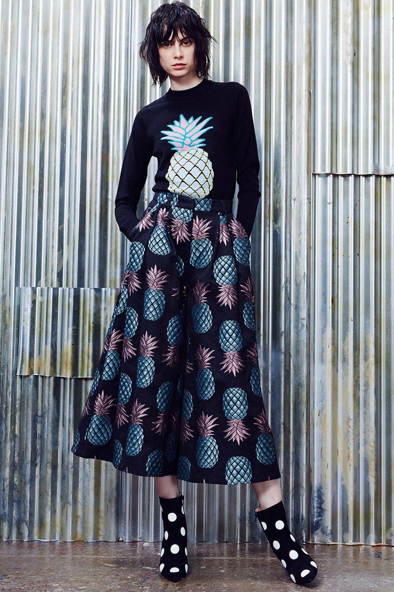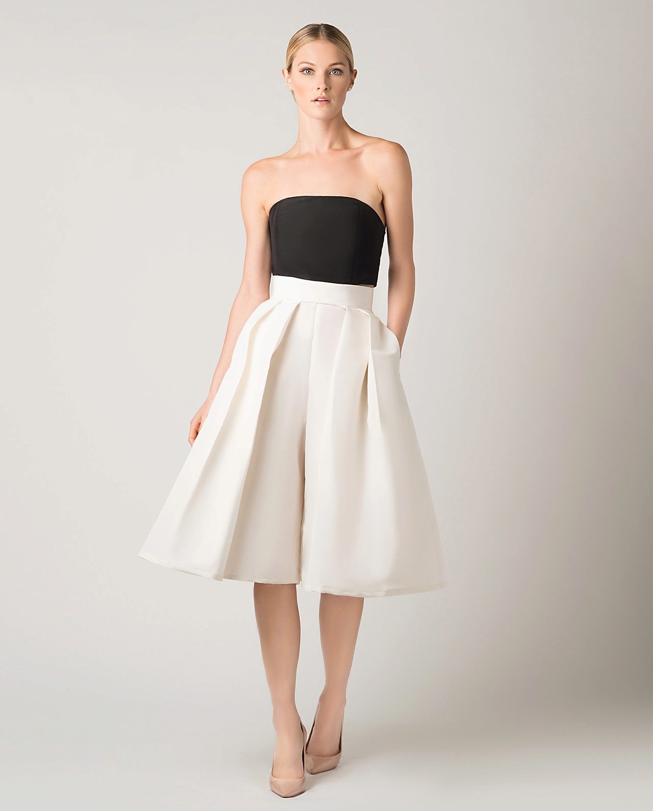 If the skirt-shorts are part of an office suit, then the top should be appropriate - a fitted jacket, a turtleneck of neutral tones, a classic blouse or a strict shirt.