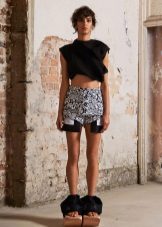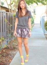 A short skirt for every day can be combined with a bright T-shirt, one-colored top or a tight-fitting turtleneck. Shoes should also be as simple and convenient as possible - ballet flats, sandals, sandals, flip-flops, low-heeled shoes.