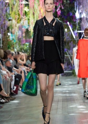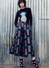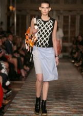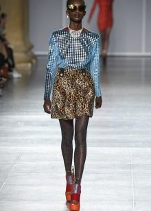 For a more formal style, a strip, a small and large cell, and peas will do. The most desperate fashionable women can try on asymmetrical models of short skirts decorated with leopard print. The color can be as yellow-brown, gray-black or gray-blue, for example.