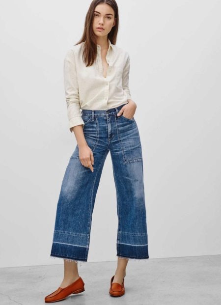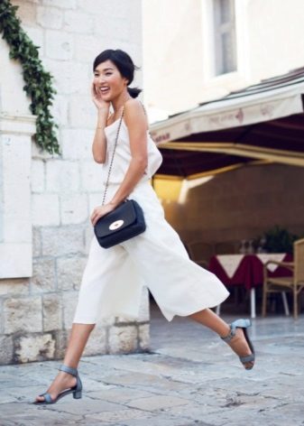 A light summer shirt will complement the set, as shoes you can choose sneakers, ballet flats, other shoes with a flat sole.