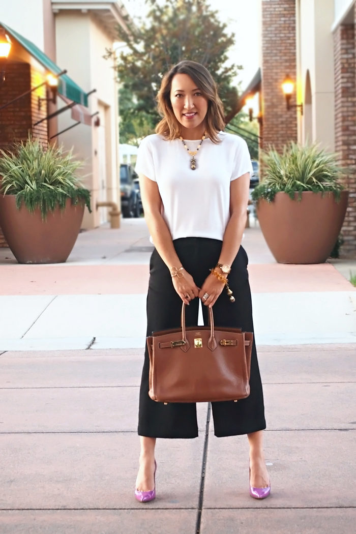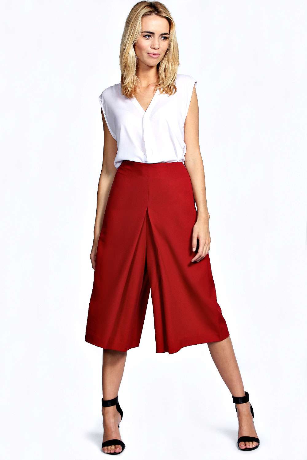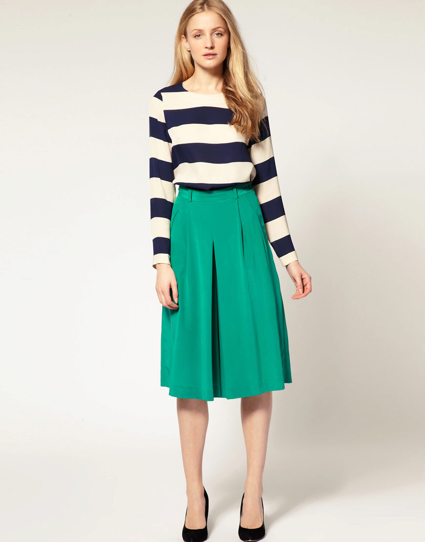 A skirt-shorts with a straight cut, mid-knee length and a beautiful blouse or top will make a great casual outfit.