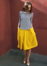 Those who prefer a flat sole can wear graceful shoes without a heel, ballet flats or even sneakers to such a skirt.