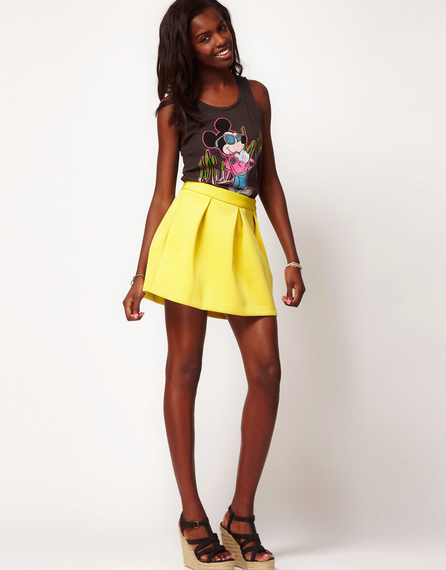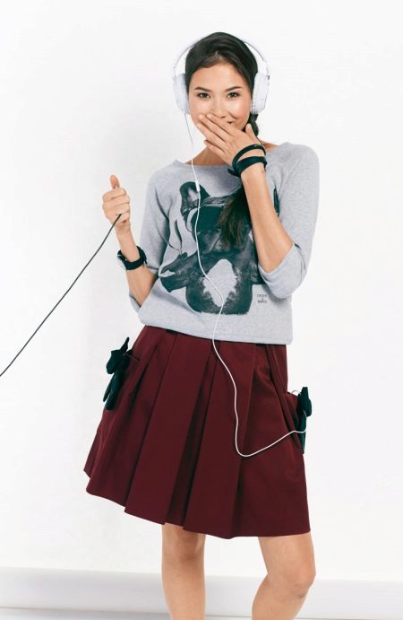 The skirt with opposite folds can be absolutely any length - from mini to maxi. Styles are also very diverse.