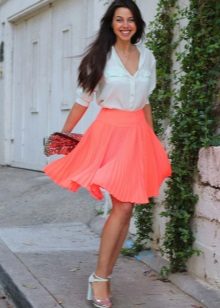 There are models with single large folds, and there are - with very small pleats. It all depends on the type of fabric. If the fabric is thin, the folds are softer, wavy, and if the skirt is sewn from dense material, the assembly will be more rigid and static. And the one and the other option looks very impressive - feminine and a little playful.