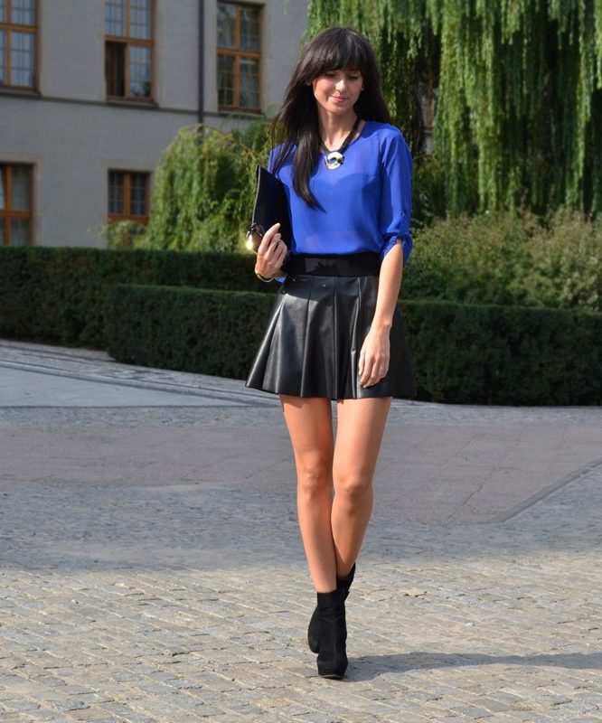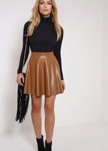 Flared skirt, made of leather, looks very advantageous, as some roughness of the material is balanced, due to the soft, romantic silhouette of the product.