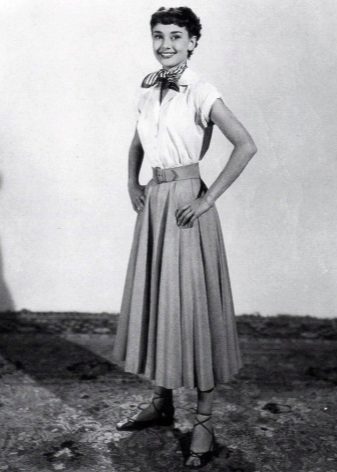 If you watch the Hollywood movies of that time, you will see that many heroines flaunt in skirts and dresses with a recognizable magnificent silhouette. Then this model was forgotten for several decades, and more recently it has reappeared in the collections of famous designers.