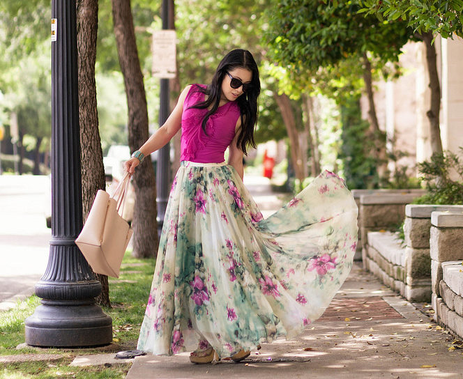 Thin, almost weightless chiffon is ideal for sewing airy summer skirts. Chiffon skirts-sun look incredibly beautiful, like delicate flowers. Since the fabric is very light and almost transparent, skirts are usually collected from several layers of material. Layered flared skirts create a favorable contrast with the fragile girl figure.