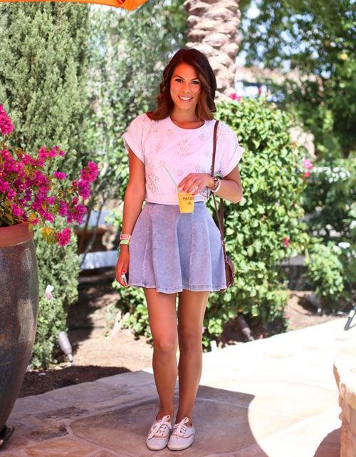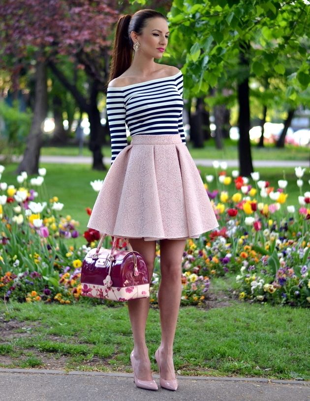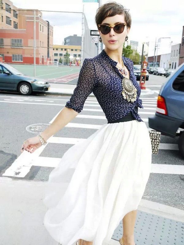 For the owners of the boyish figure (flat chest and narrow hips), this skirt will be a great way to make the forms more feminine. But in this case, you need to choose a suitable top so that as a result you don’t turn into a neat triangle.