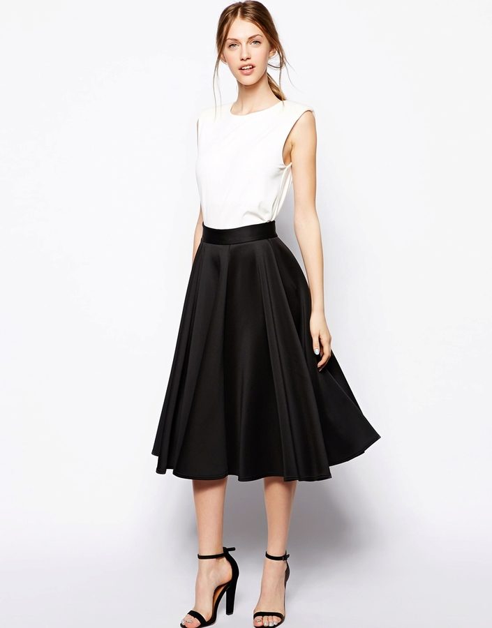The flared skirt can be made in several variations. Short models are good for informal events, medium-length skirts are a universal everyday option, and long ones, despite some impracticality, are now at the height of fashion.