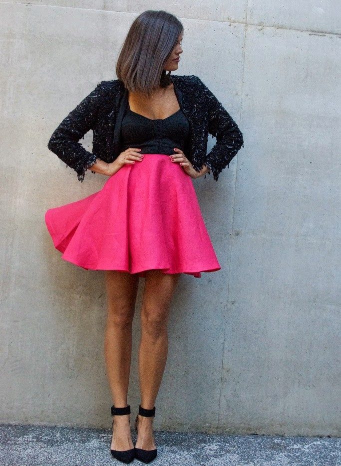 Flared skirt can be the base thing of your wardrobe. She belongs to the category of clothing that goes well with a variety of things - from frivolous summer T-shirts to strict blazers.