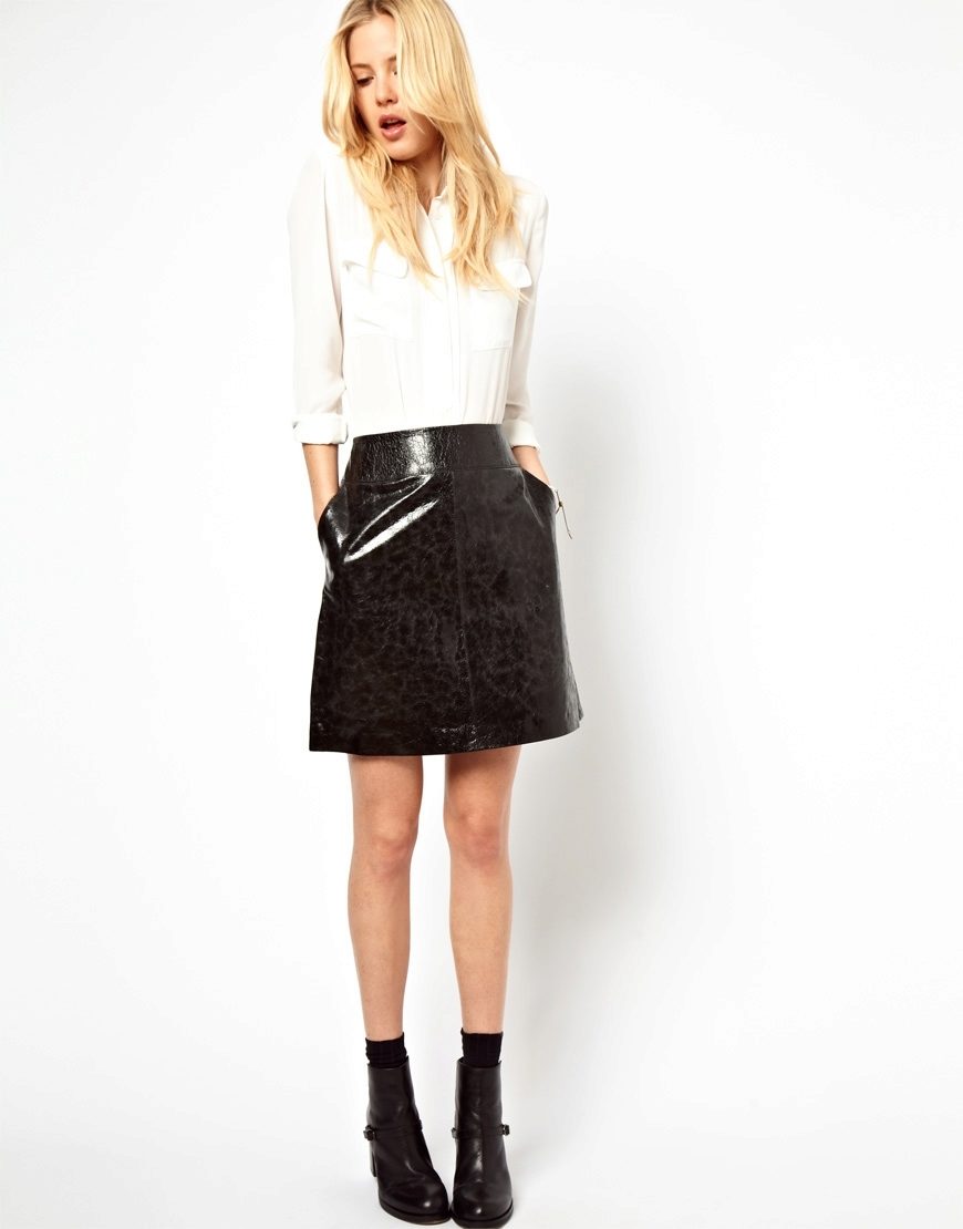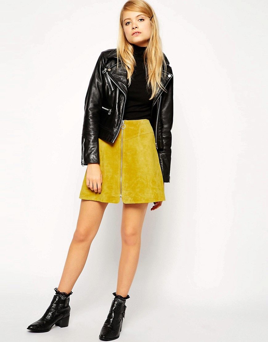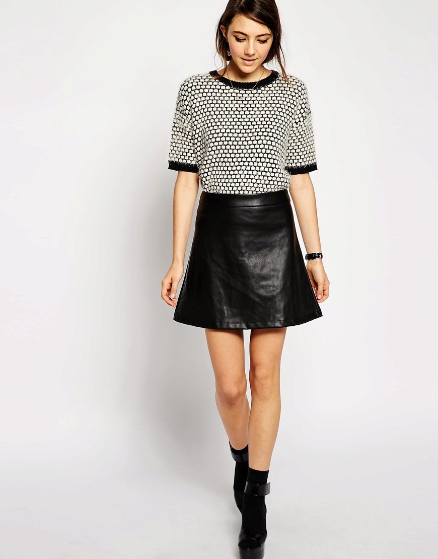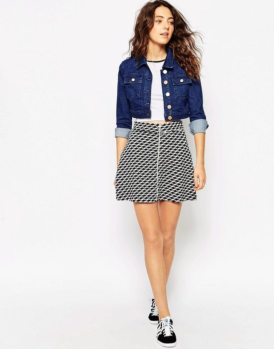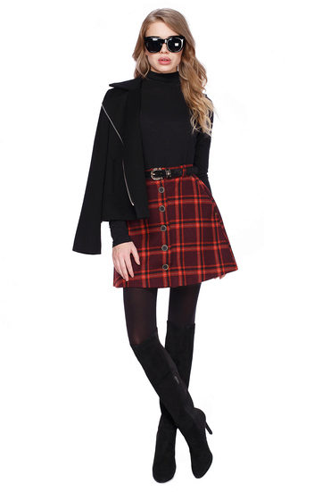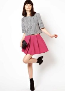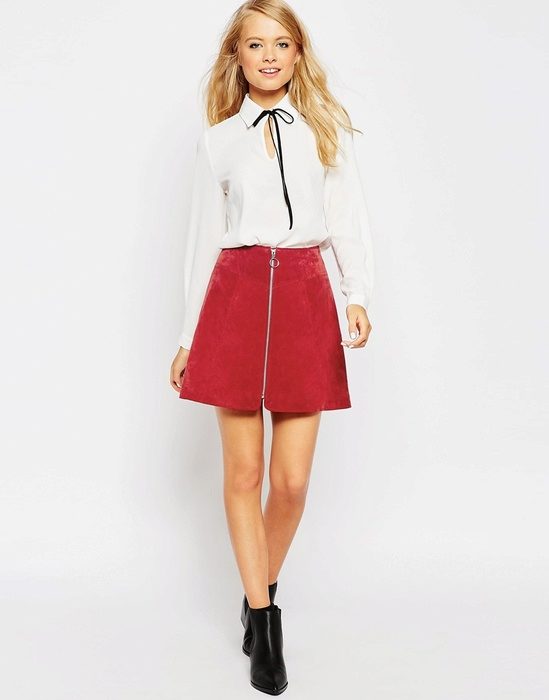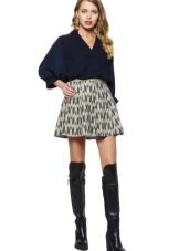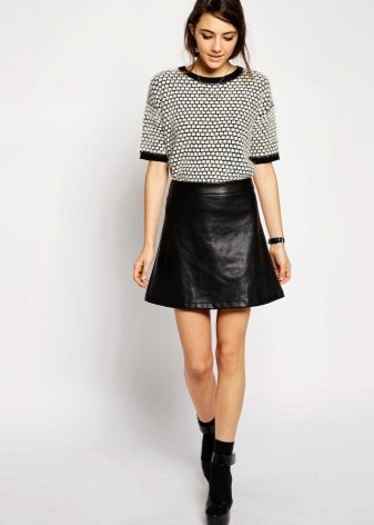 The short model looks great on girls of slim build and short stature, so more often than not, this style is perceived as an element of youth style of clothing. The mini-skirt almost completely opens the legs, so it is most harmoniously combined with a more closed top. Perfectly combined with tops, blouses, T-shirts, T-shirts, turtlenecks, fitted jackets, shortened jackets.
