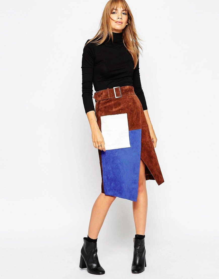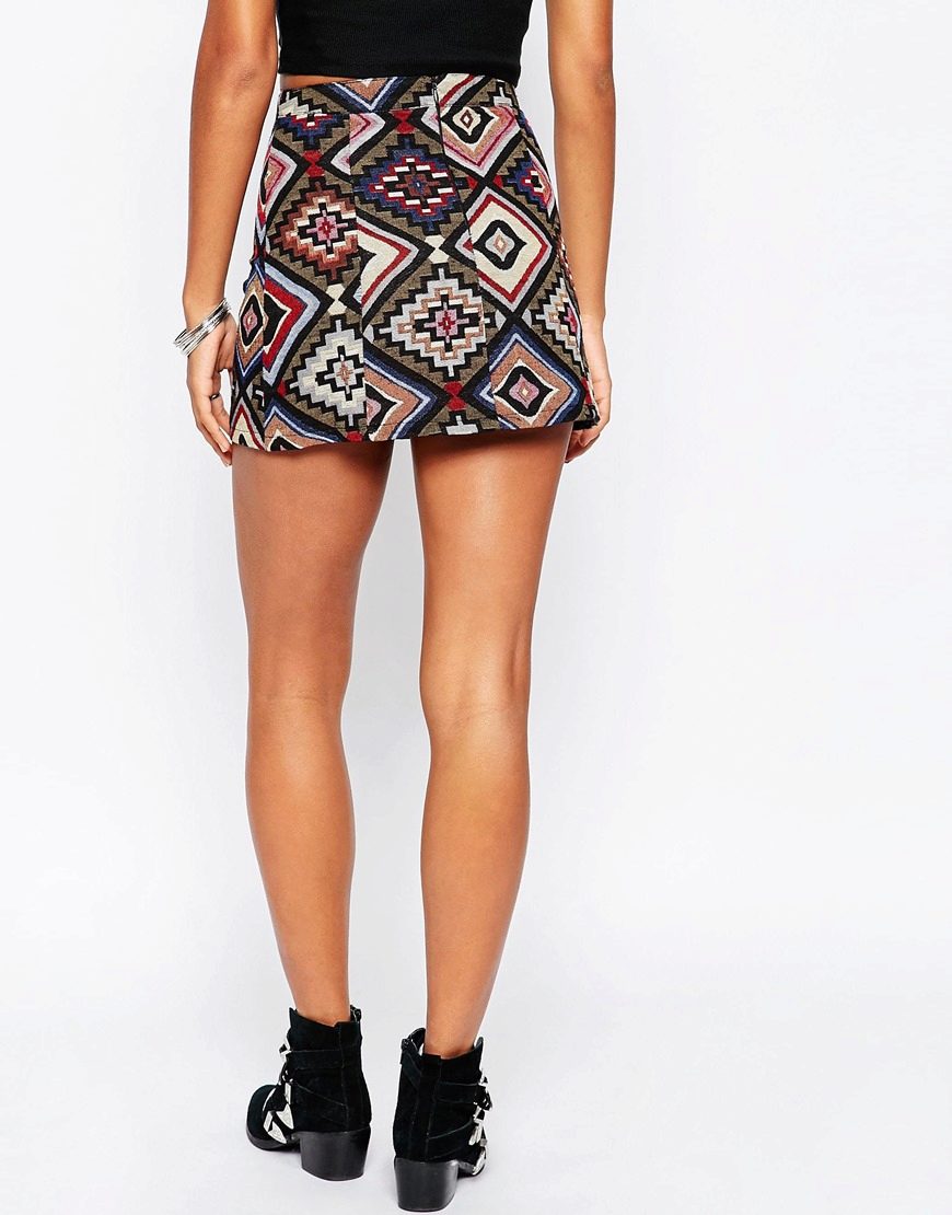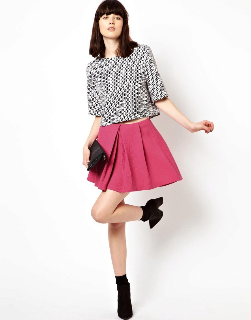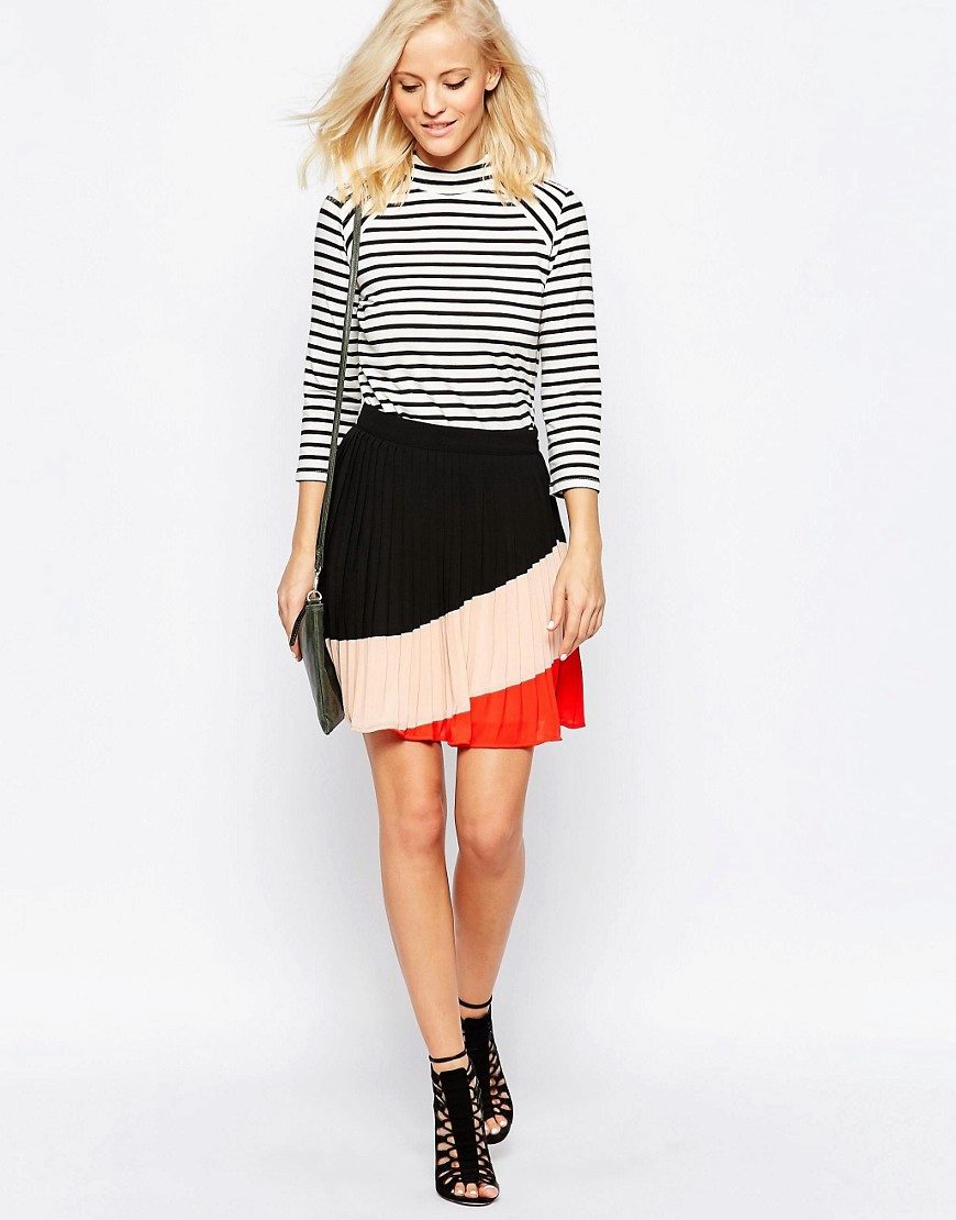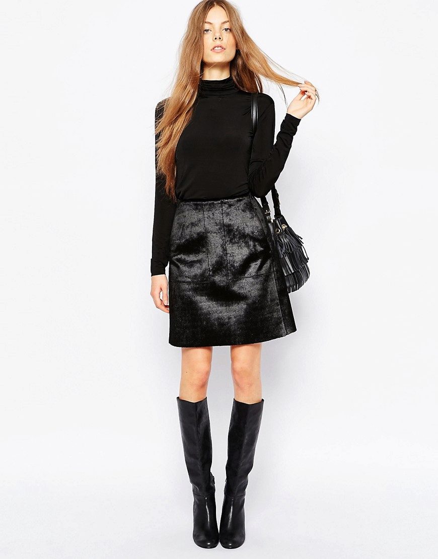 The short model looks great on girls of slim build and short stature, so more often than not, this style is perceived as an element of youth style of clothing. The mini-skirt almost completely opens the legs, so it is most harmoniously combined with a more closed top. Perfectly combined with tops, blouses, T-shirts, T-shirts, turtlenecks, fitted jackets, shortened jackets.
