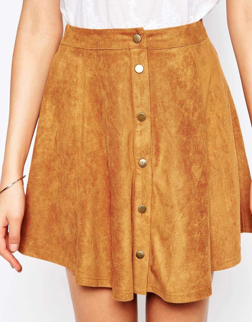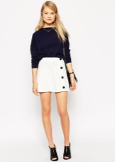 The classic version of the skirt with buttons is suitable for strict clothing style: school uniform, office, etc. Buttons in this case can perform a purely decorative function or be a constructive element of clothing. Clothes of a freer style can be decorated with buttons of various shapes and colors. Buttons can be arranged in a strict order or asymmetrically.
