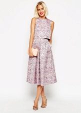 The most common option. Suitable for different occasions. Average length is recommended for women of most body types. Trapezoid skirt allows you to visually stretch the figure, reduce the waist and make the lush hips more slender. Average length is appropriate for any event from a business lunch, ending with a celebration.