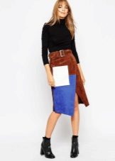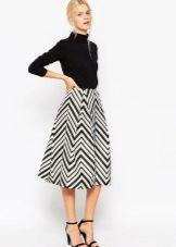 The choice of a skirt of a suitable color depends on many reasons, for example, on the season. For the cold season, classical colors and shades are preferable: black, blue, wine, burgundy, dark gray, dark green, etc. As an ornament, traditional variants are also recommended - polka-dot, cage, strip, “goose foot”. Summer is the time for multicolored paints, so skirts can be made in any desired color scheme and be decorated with all sorts of prints.