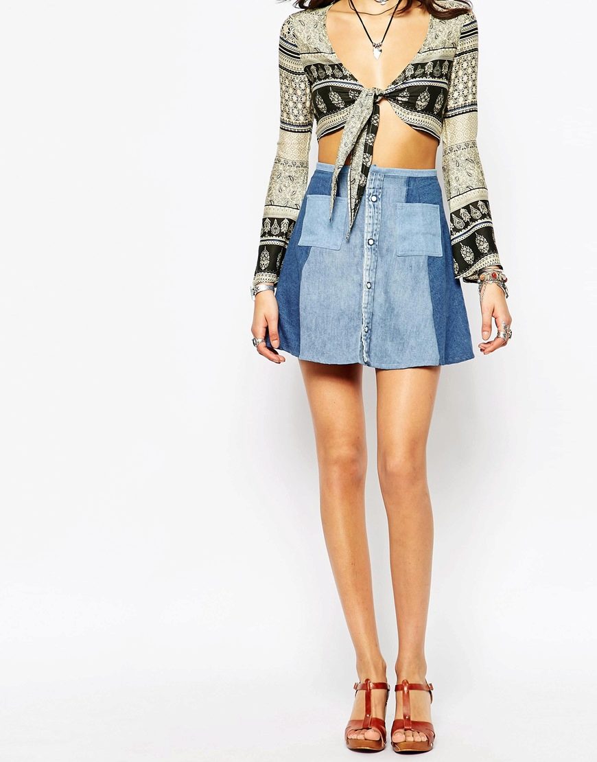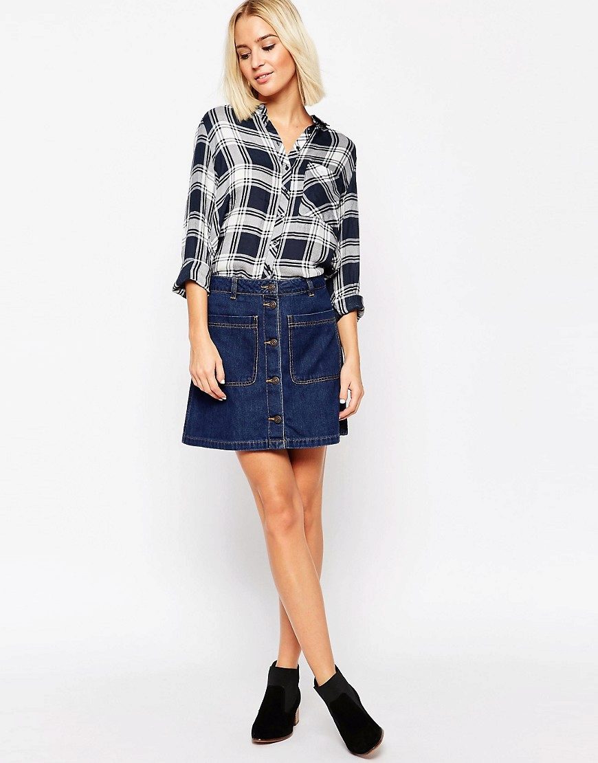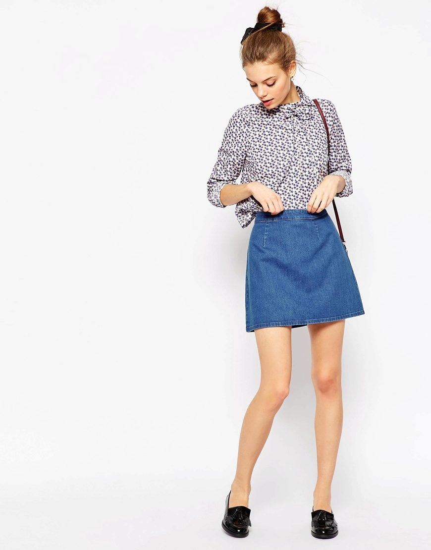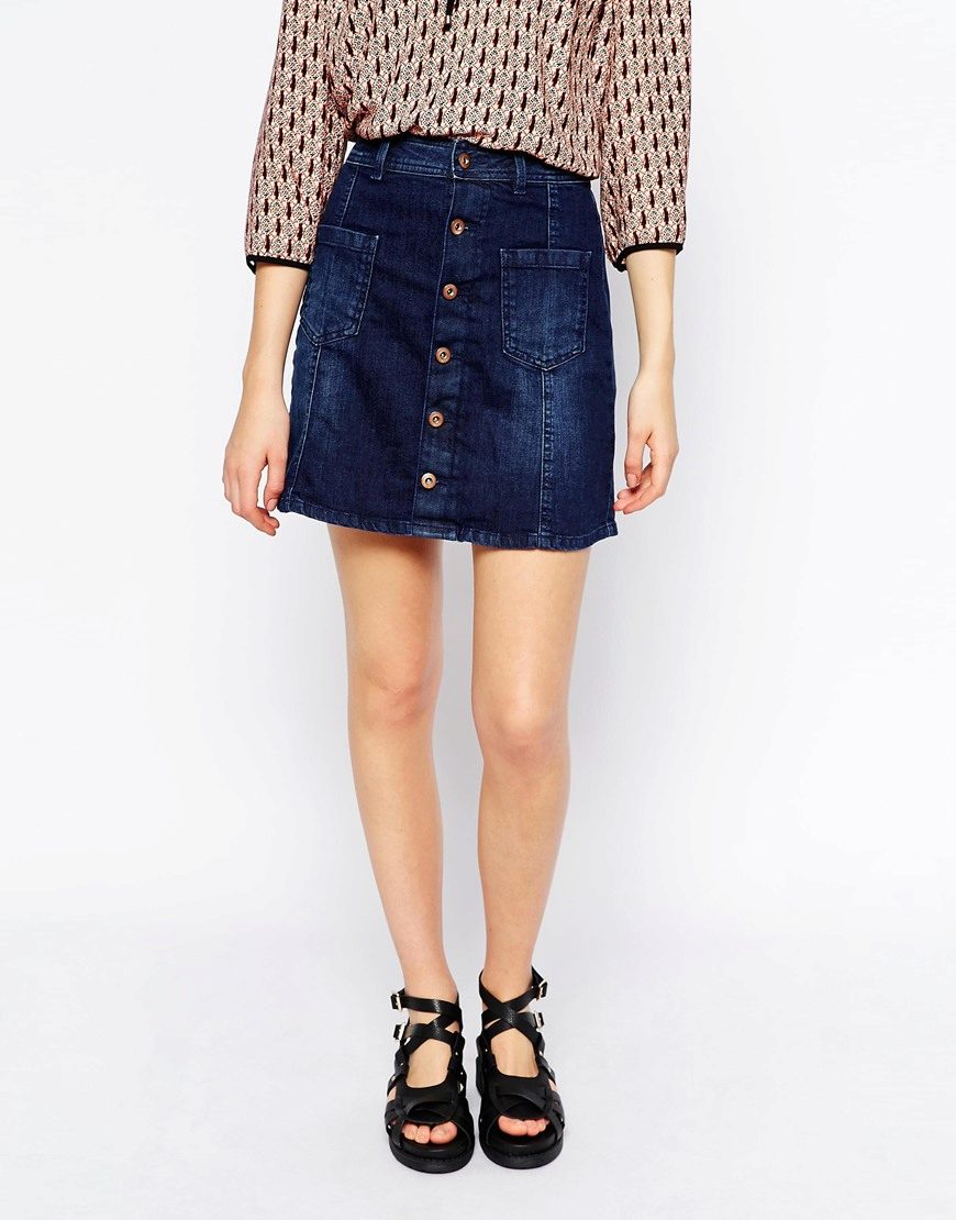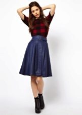 The mass passion for denim skirts with trapezes fell on the 90s of the last century. Then such a model could be found everywhere - at work, in a cafe, on the street, in a cinema. For sewing such a model was chosen denim of various shades. Today, denim models are no less loved, but are no longer so ubiquitous. Denim A-line skirt is a constant accessory of youth style clothing.