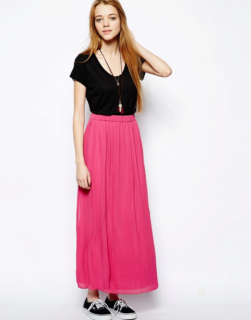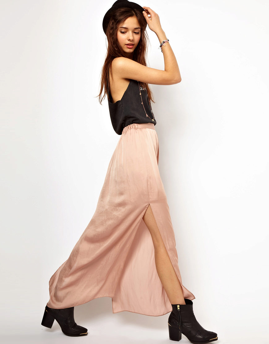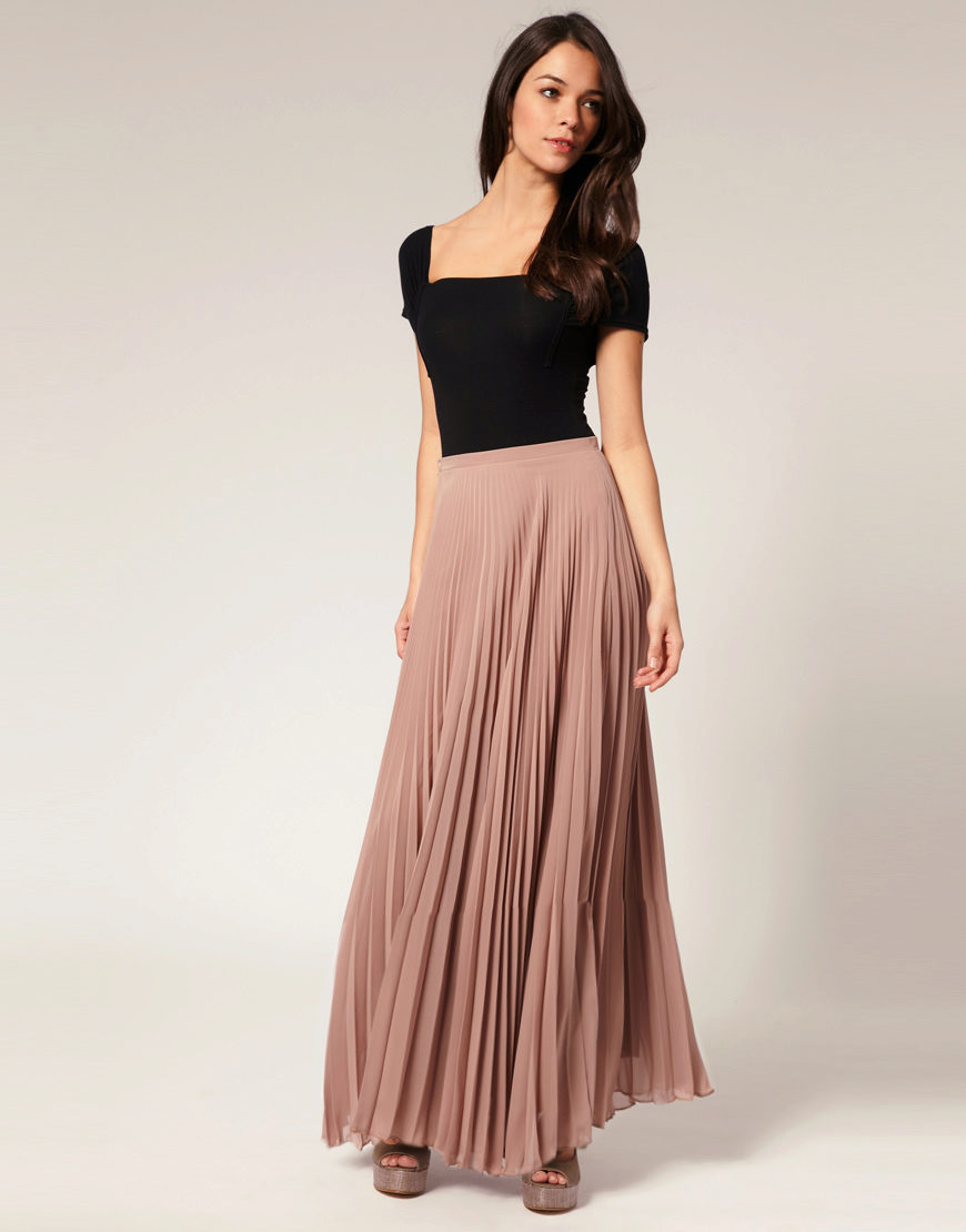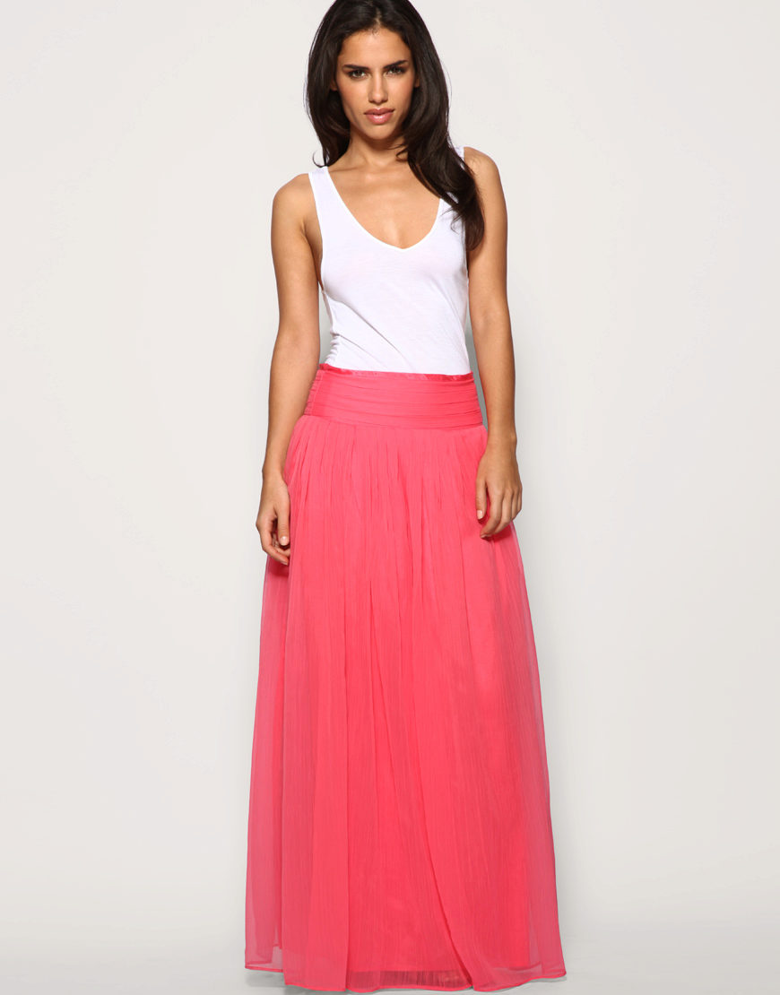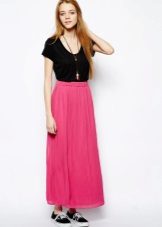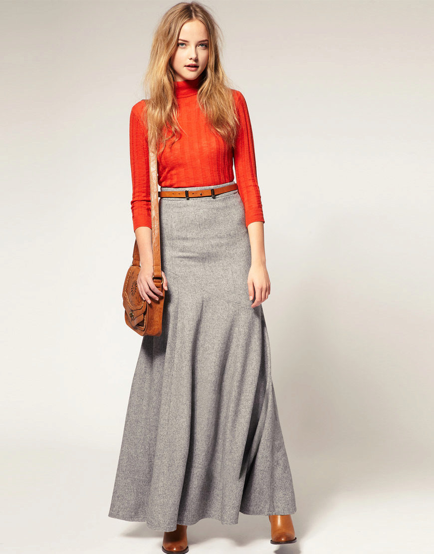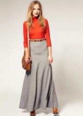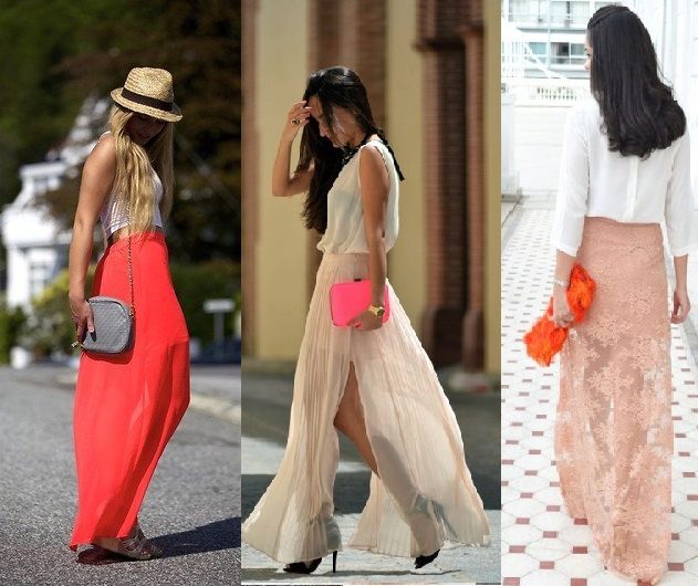 Long skirt A-line can be wide or narrow. In the first case, it will fall to the floor in beautiful, large waves. The second option is a classic skirt A-shaped silhouette.