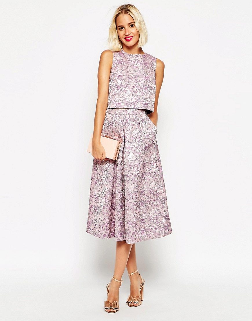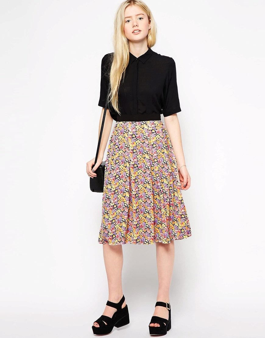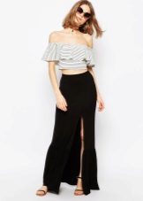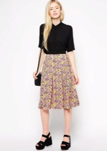 For an everyday walk to such a skirt, a top with a shoulder straps, a T-shirt or T-shirt is perfect. Complement the image of a jacket draped over it or a fitted jacket. As shoes, you can pick up classic pumps, light ballet flats, platform sandals or flat shoes, etc.