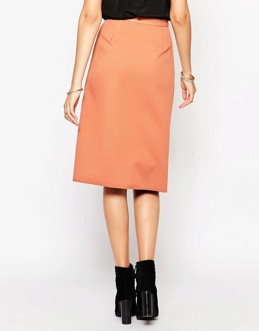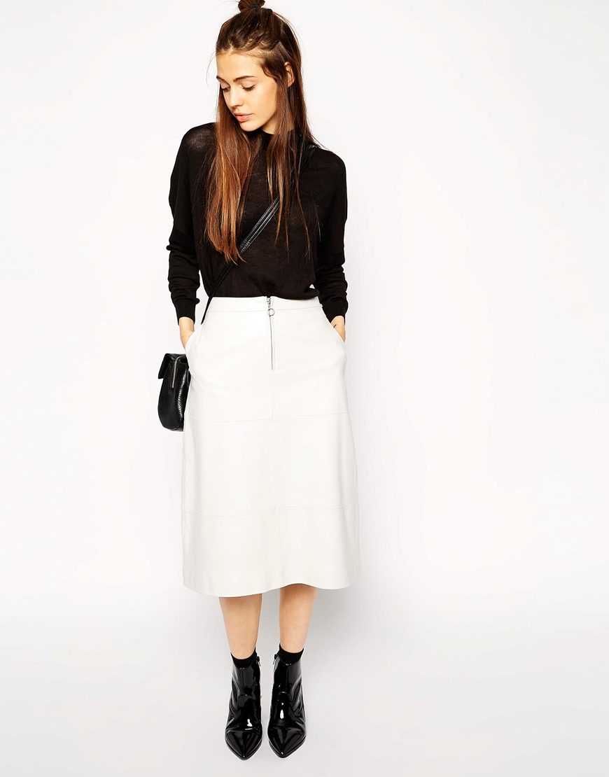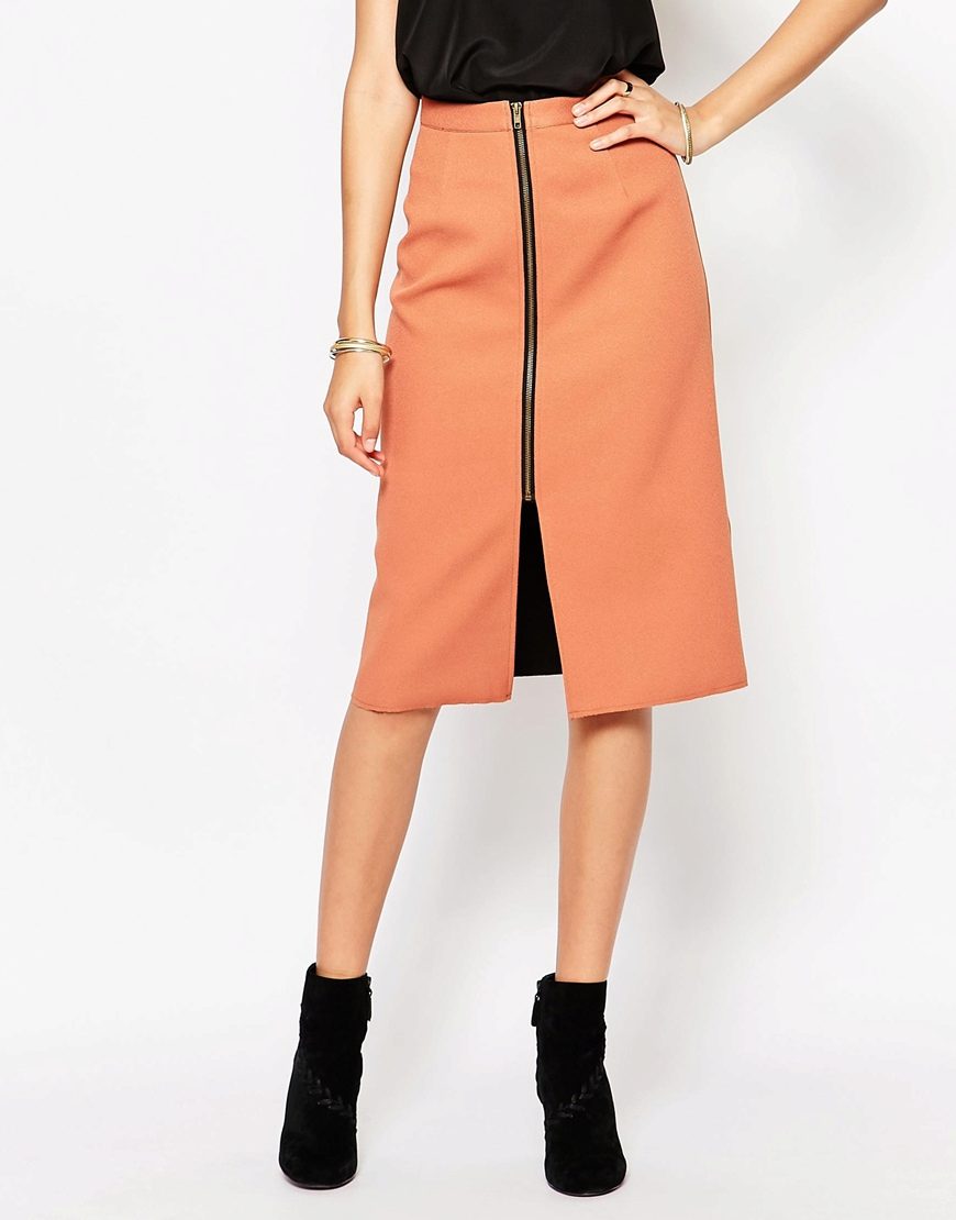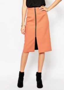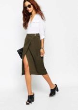 To create a business image, it is best to choose a medium-length skirt and supplement it with a strict blouse and classic boats. Instead of a blouse, you can use a jumper with 3/4 sleeves. The skirt can be smooth, wrinkled or wrap. An elegant blazer and high-heeled shoes will complement the look.