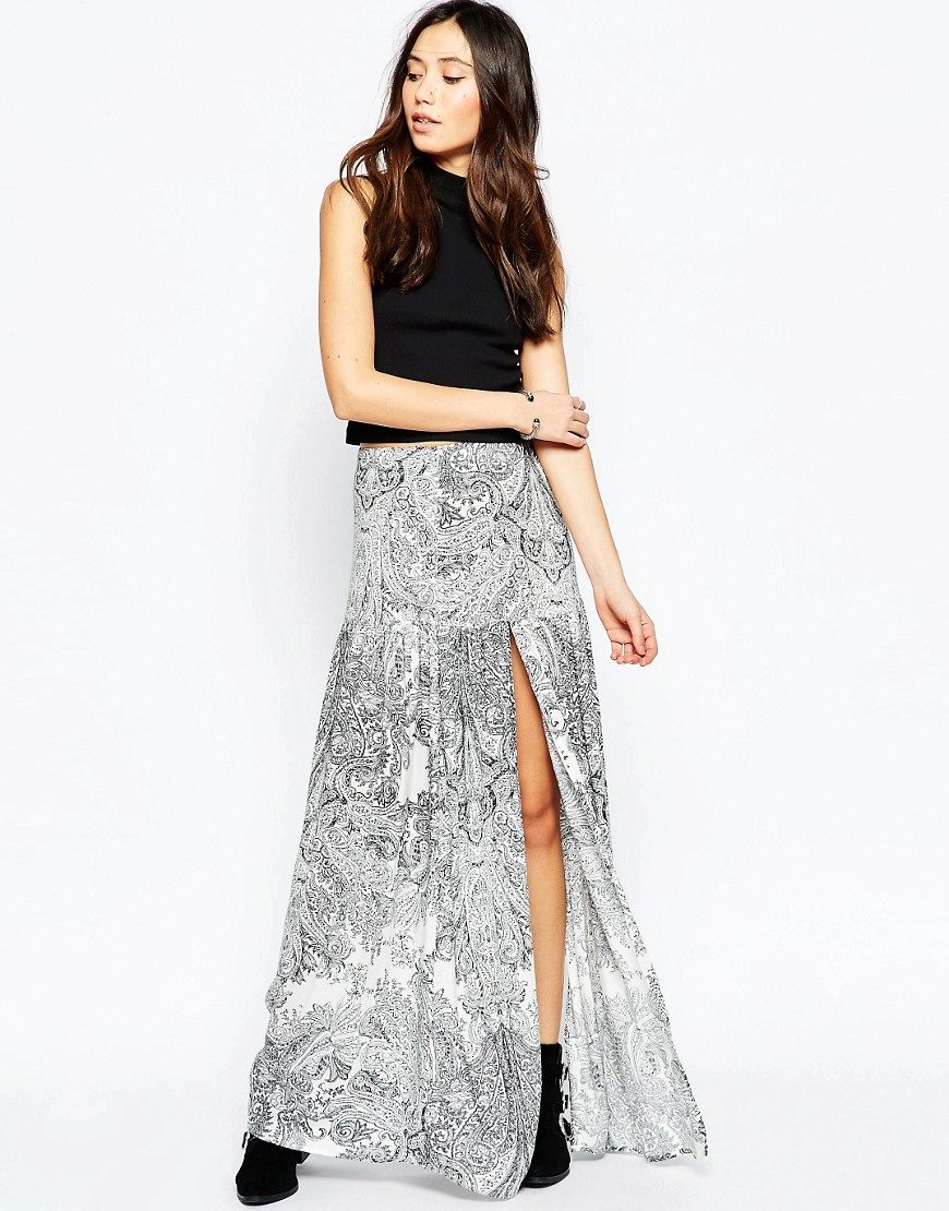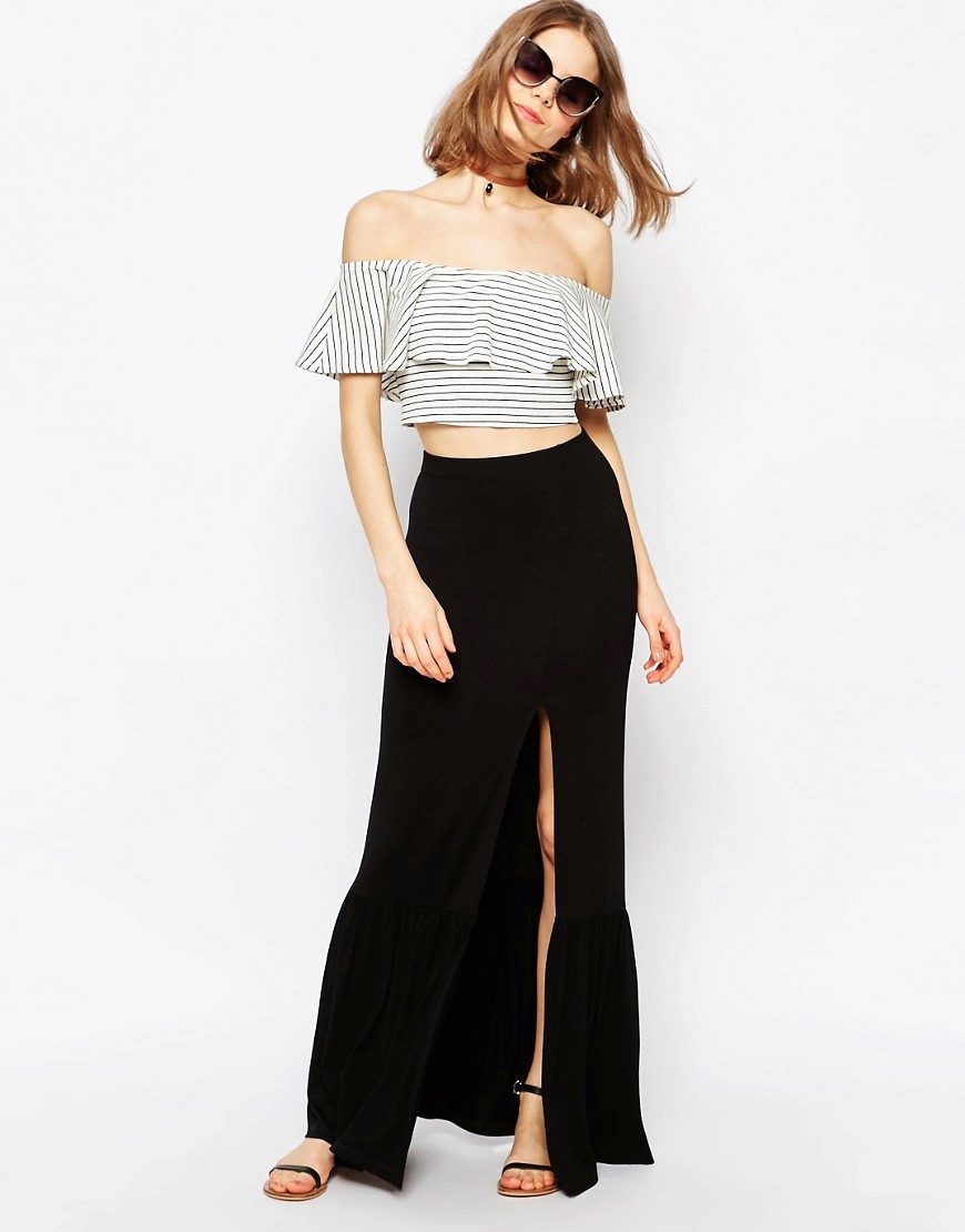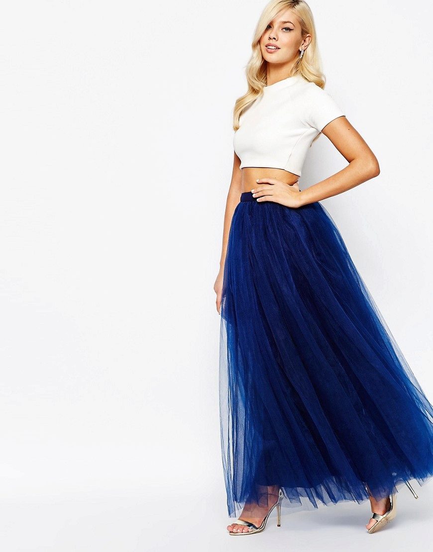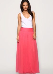 A long skirt is most often associated with an evening dress, thanks to its surprisingly feminine and elegant silhouette. Nevertheless, a long skirt made from lightweight, translucent chiffon is a great option for a summer walk through the city, for example. Such skirts are harmoniously combined with tops, T-shirts, short jackets.