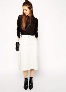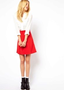 The skirt of a trapeze silhouette is a rather democratic version of clothing, therefore it can be freely combined with completely opposite objects - blouses, T-shirts, tops, sweaters, sweaters, shirts, jackets, etc.