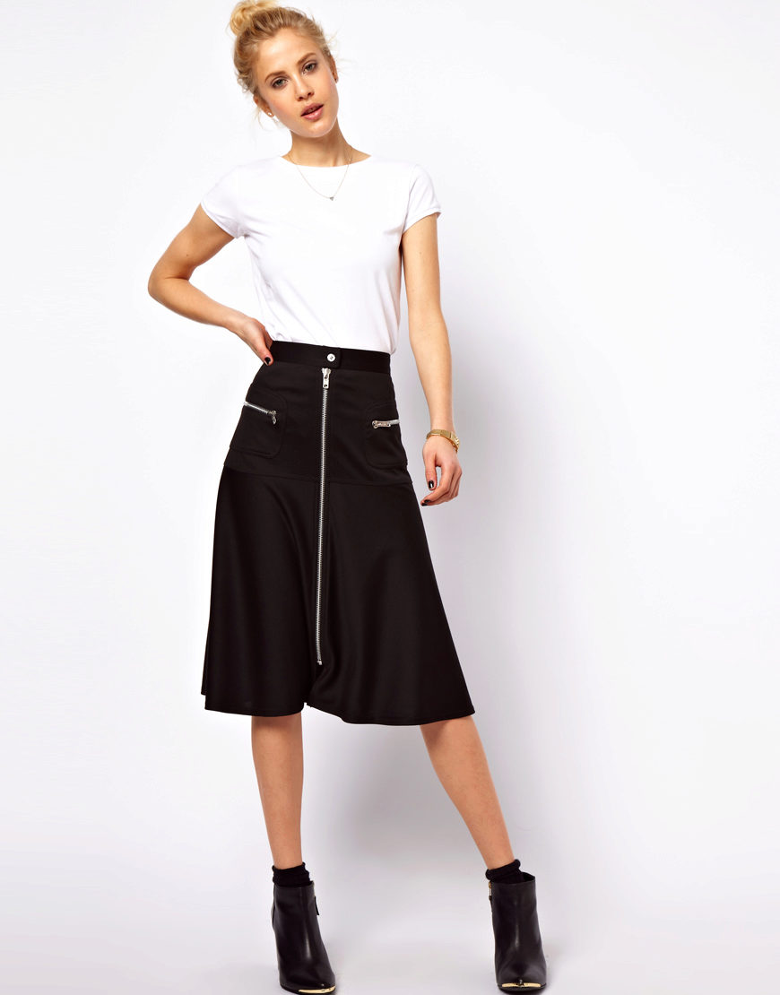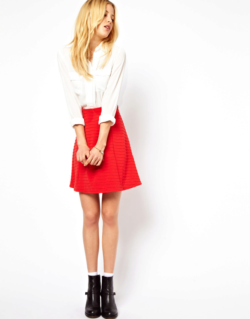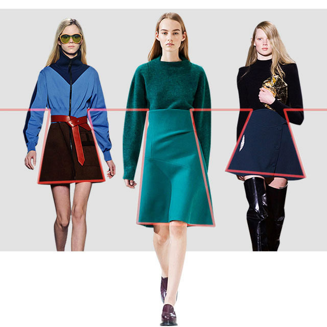 A slim girl can try on a skirt trapeze of any length. This model will help to emphasize the fragility of the figure and open the views of those around the long, slim legs.