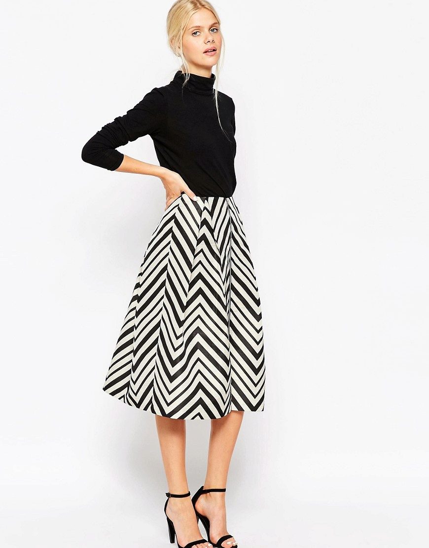Girls with asthenic body type are recommended skirts with large prints or horizontal stripes. Such a pattern adds volume to the figure and makes it more feminine and round.
