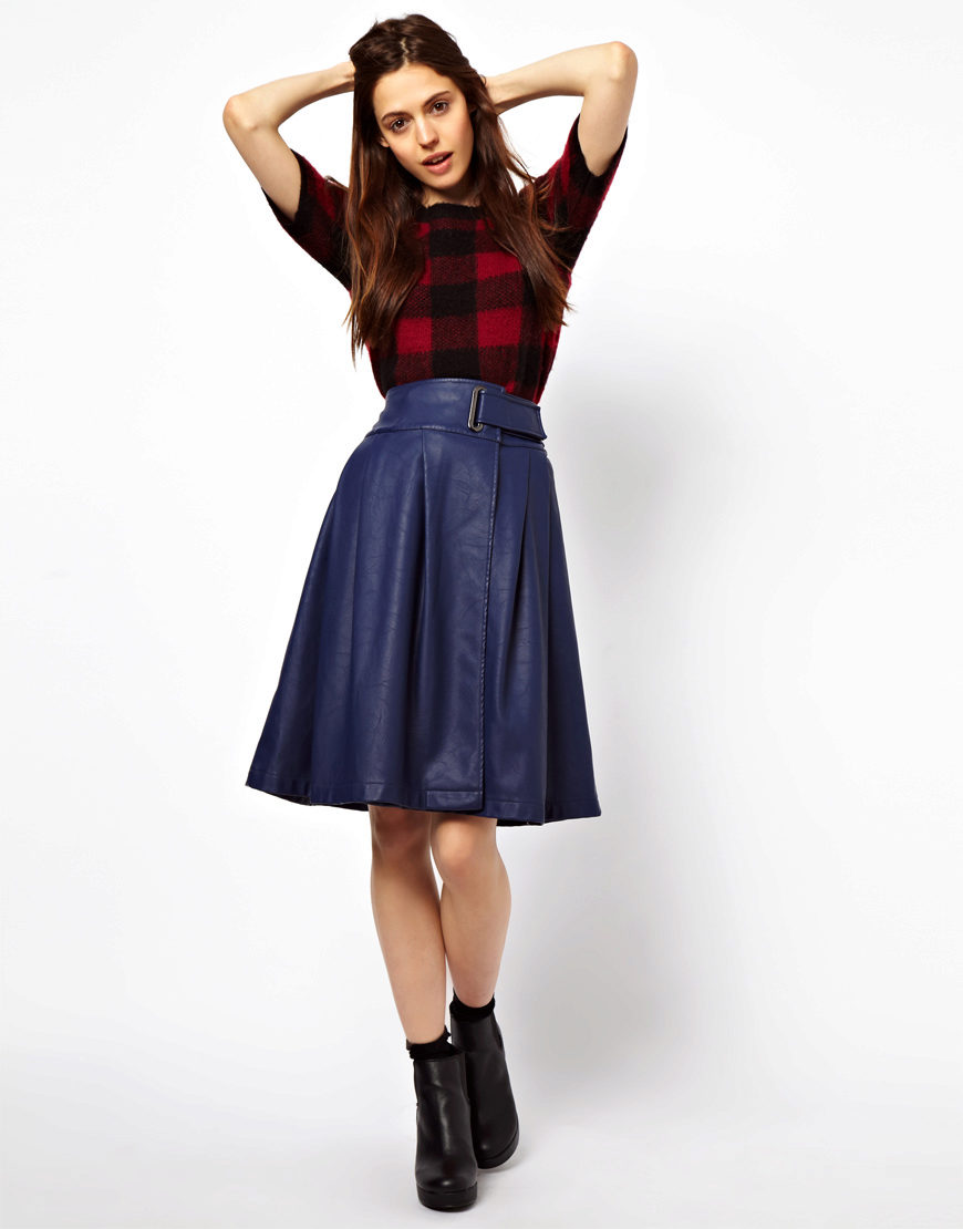 Leather is one of the most popular and sought-after materials for trapezium silhouette skirts. This is a very soft, slinky material that keeps its shape and emphasizes the dignity of the figure. The most common leather skirt trapeze length mini and midi. Black skirt goes well with classic blouses, denim shirts and bright summer tops. Leather skirt trapeze - a practical and, at the same time, an elegant version of clothing for every day.