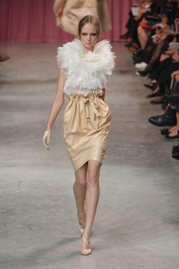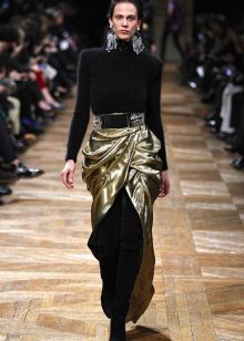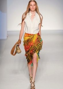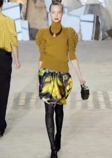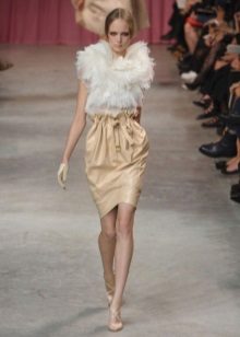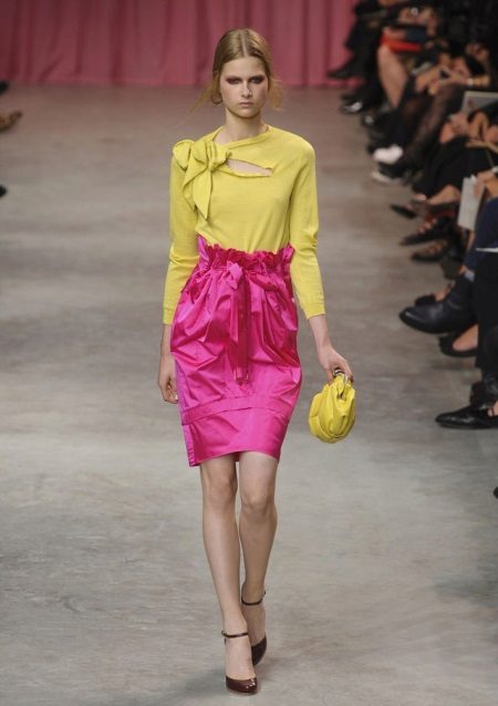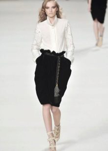 In the collection of Valentino presented this style of skirt in a bright red color. Karl Lagerfeld in the luxurious collection of Chanel demonstrates a tulip skirt with the smell of mini length, which has much in common with Indian clothing.