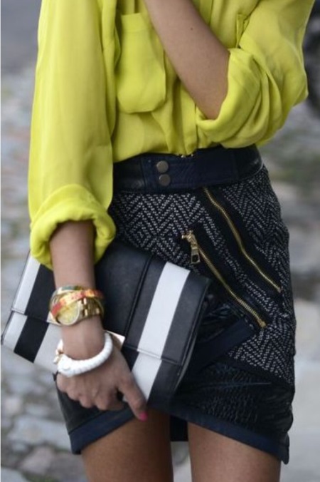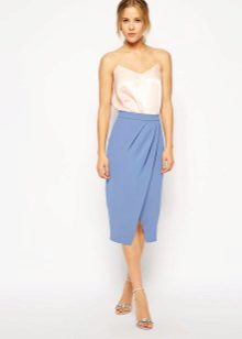 The midi length skirt looks great with blouses or tops, jackets or short type vests. It is strictly forbidden to wear long jackets, sweaters or cardigans, because in this way the silhouette looks ridiculous.