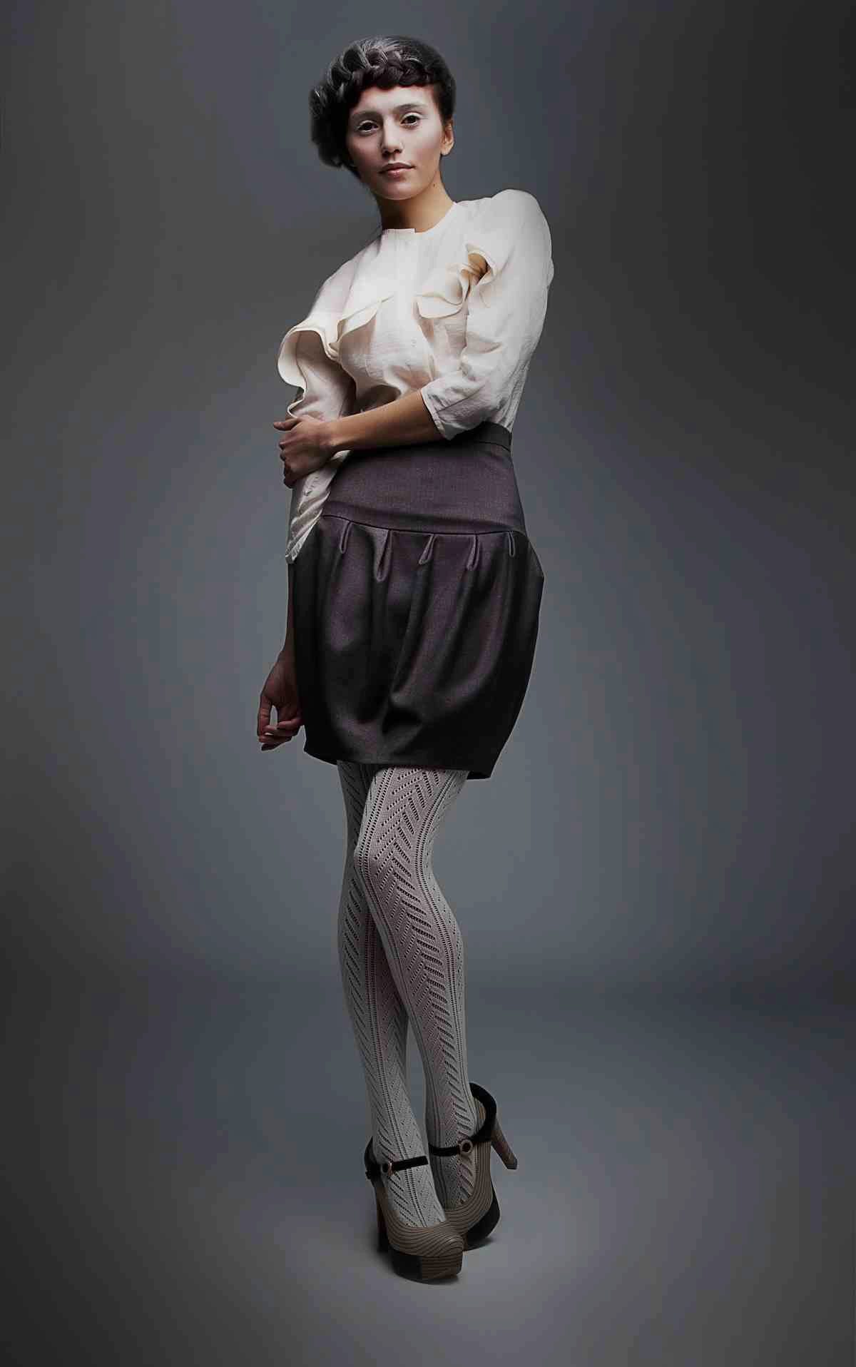 Girls with type A figure in a tulip skirt will be able to hide full legs and wide hips. A long model will help to hide skinny legs, and a skirt with a mini length will suit your beauty.
