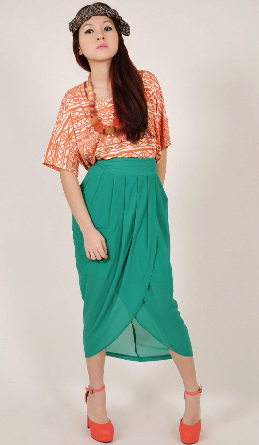 For the summer period, it is preferable to choose bright and joyous shades. For example, the tulip skirt is green, bright red, yellow or turquoise.