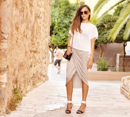 The tulip skirt is an excellent choice for the spring and summer season, so it is often combined with blouses or light-skinned shirts. Tight shirt, top or corset will look great.