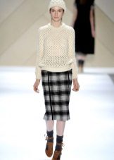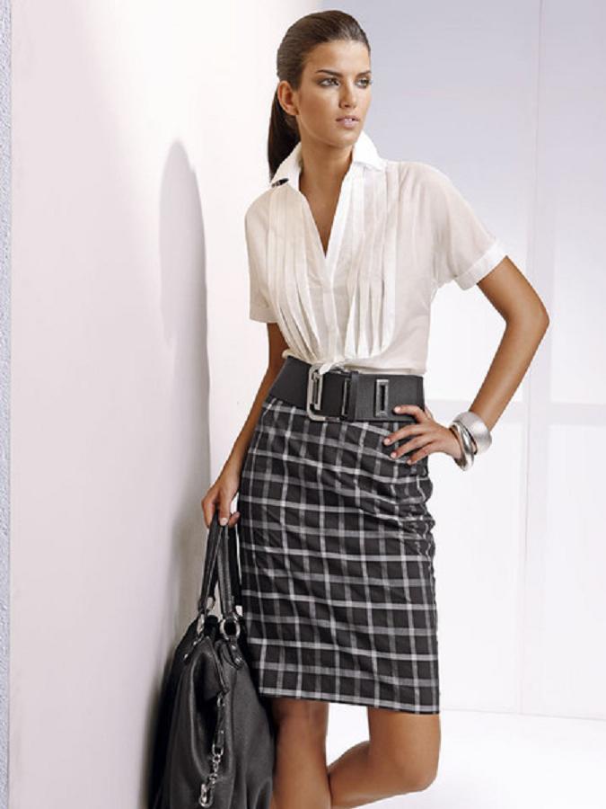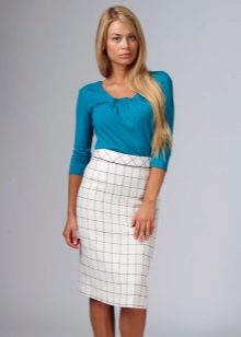 The skirt in a white cage combines well with things of classic colors. Do not overload the image of a variety of colors. Here is a good measure.