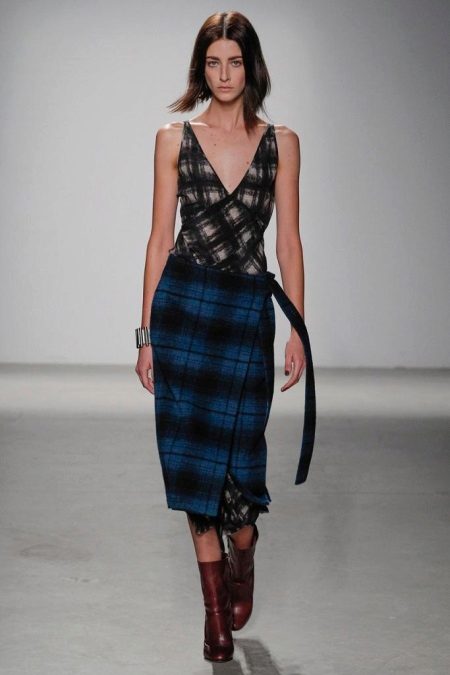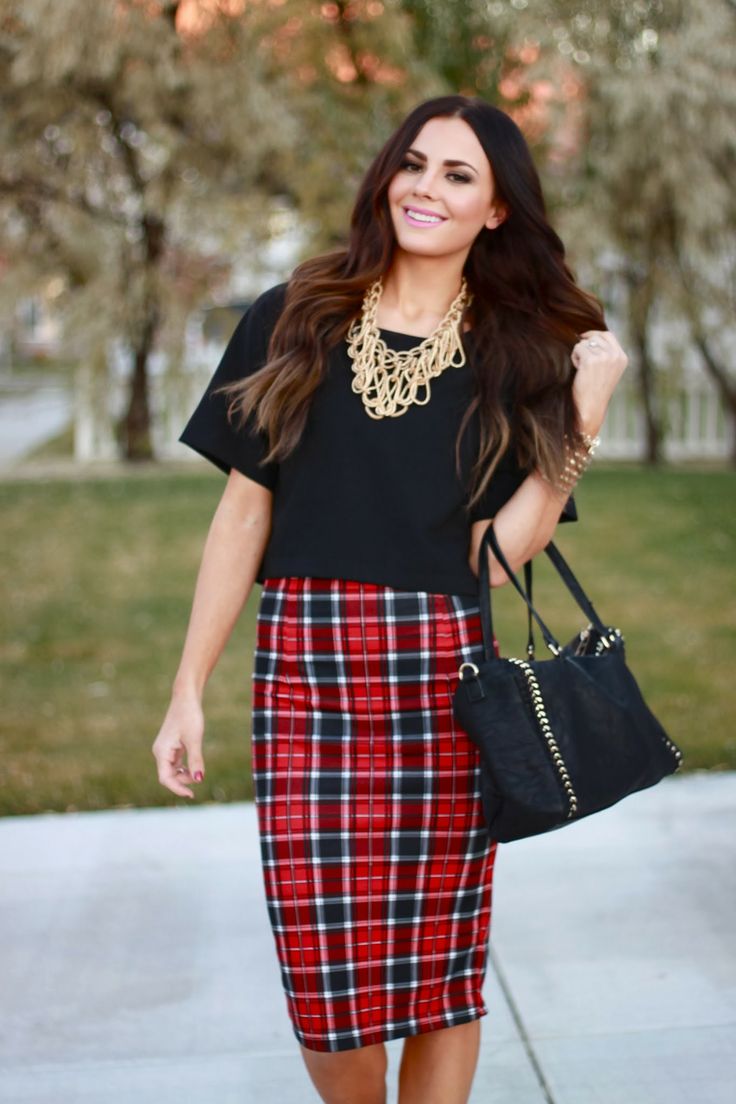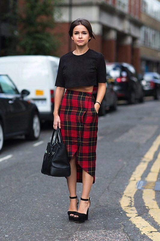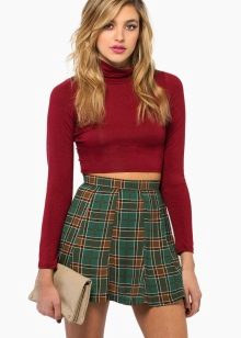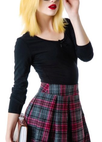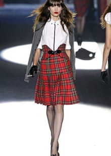 Style plaid skirt should be selected based on the type of physique. For example, slim, young girls can safely try on all sorts of options, ranging from straight skirts with a high or low waist, and ending with pleated mini skirts on a yoke.